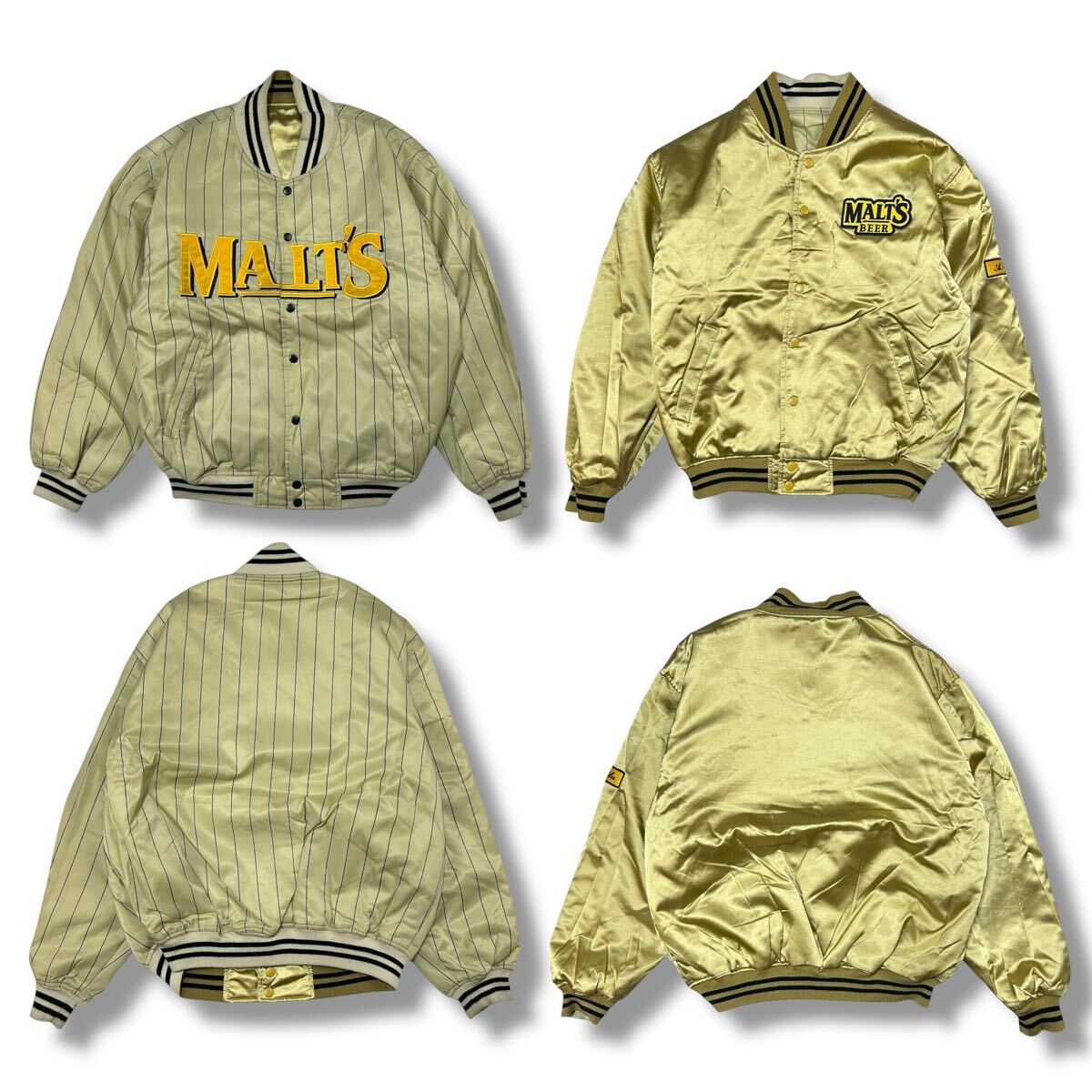 0908MS 【希少】 限定 阪神タイガース MALT’S モルツ スタジャン モルツビール リバーシブル ストライプ ベージュ系 ゴールド系 フリー