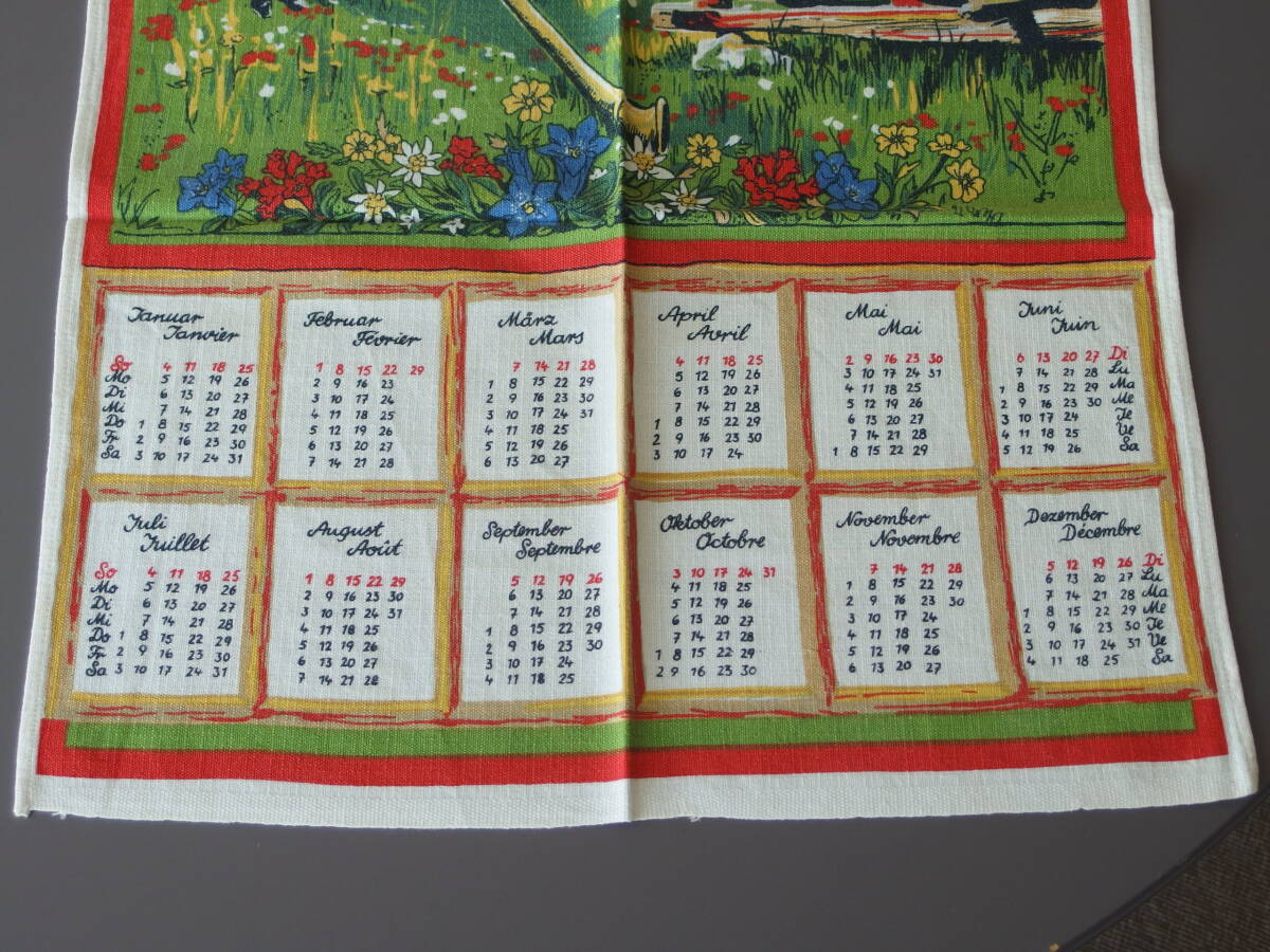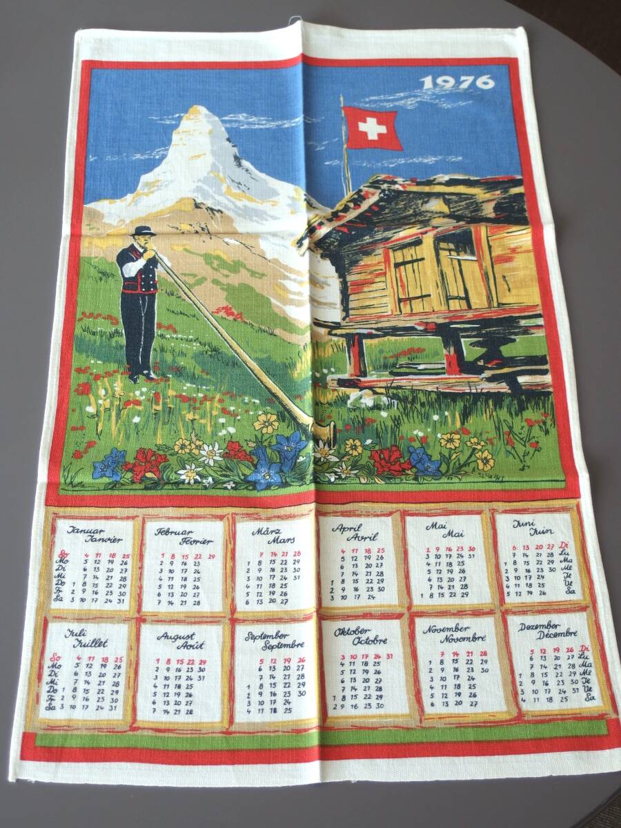 スイスで入手した、スイス製のティータオルです。1976年のカレンダーがプリントされておりますので1976年製になります。