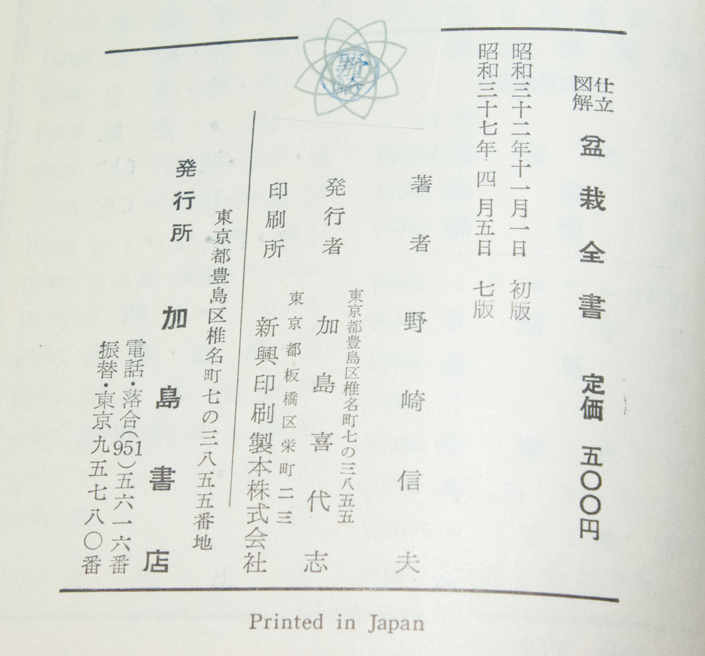 【送料無料】仕立図解 盆栽全書 昭和37年 野崎信夫 加島書店 古本