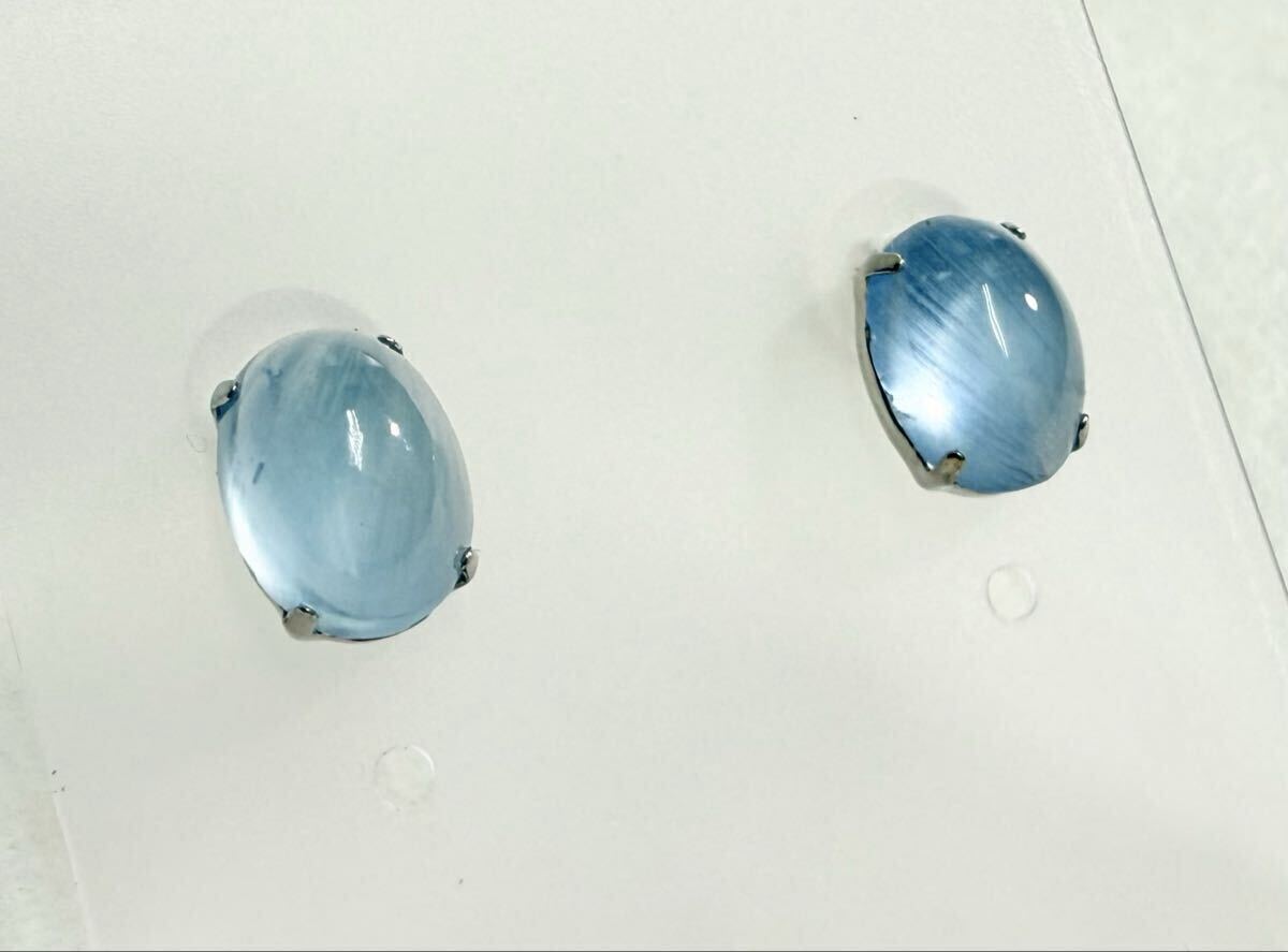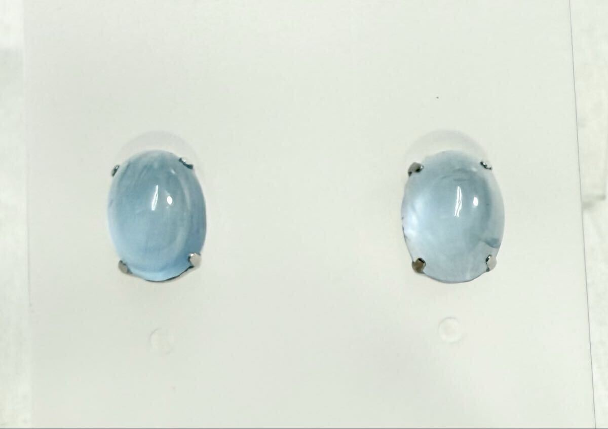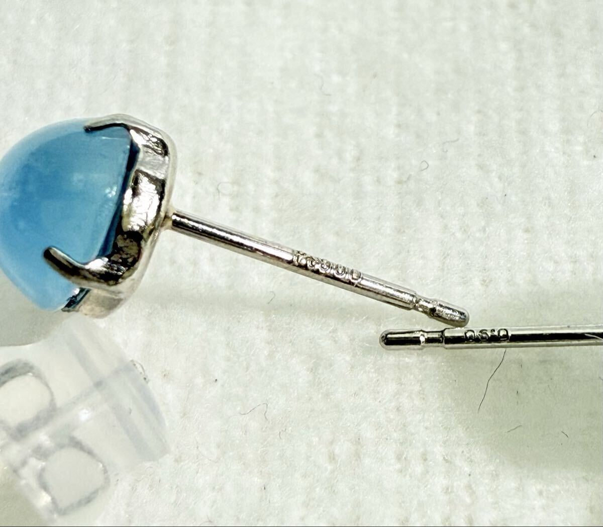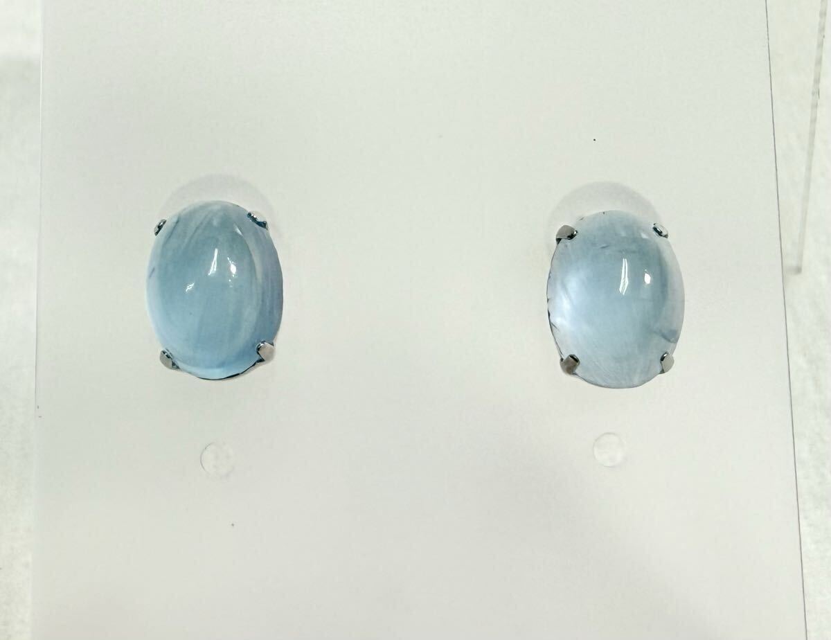 アクアマリン オーバル カボション Pt Pt900 ピアス スタッドピアス