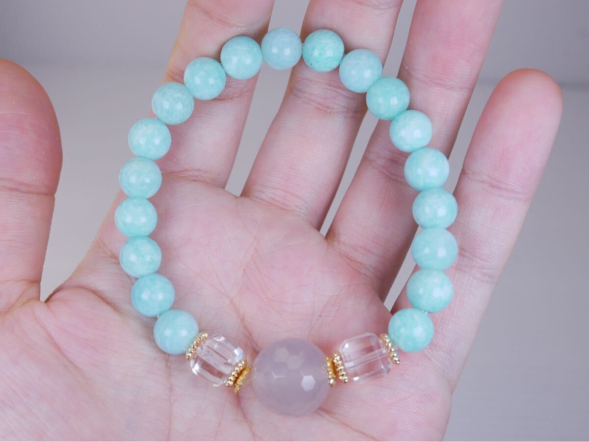 カット瑪瑙大玉と水晶スクエアとアマゾナイト天然石 ブレスレット