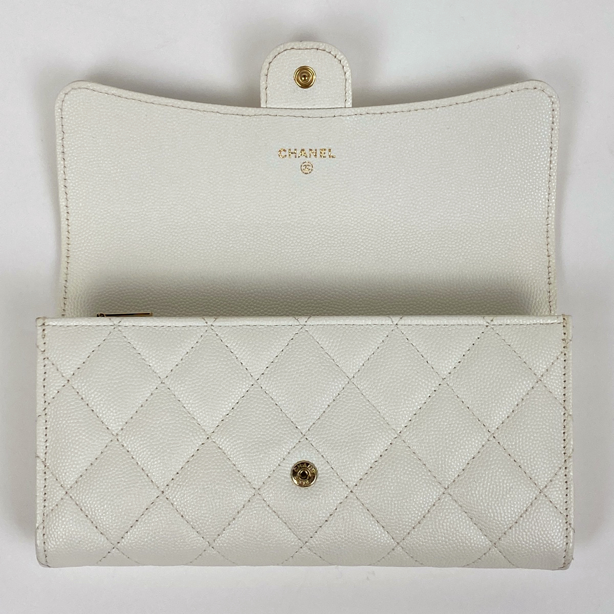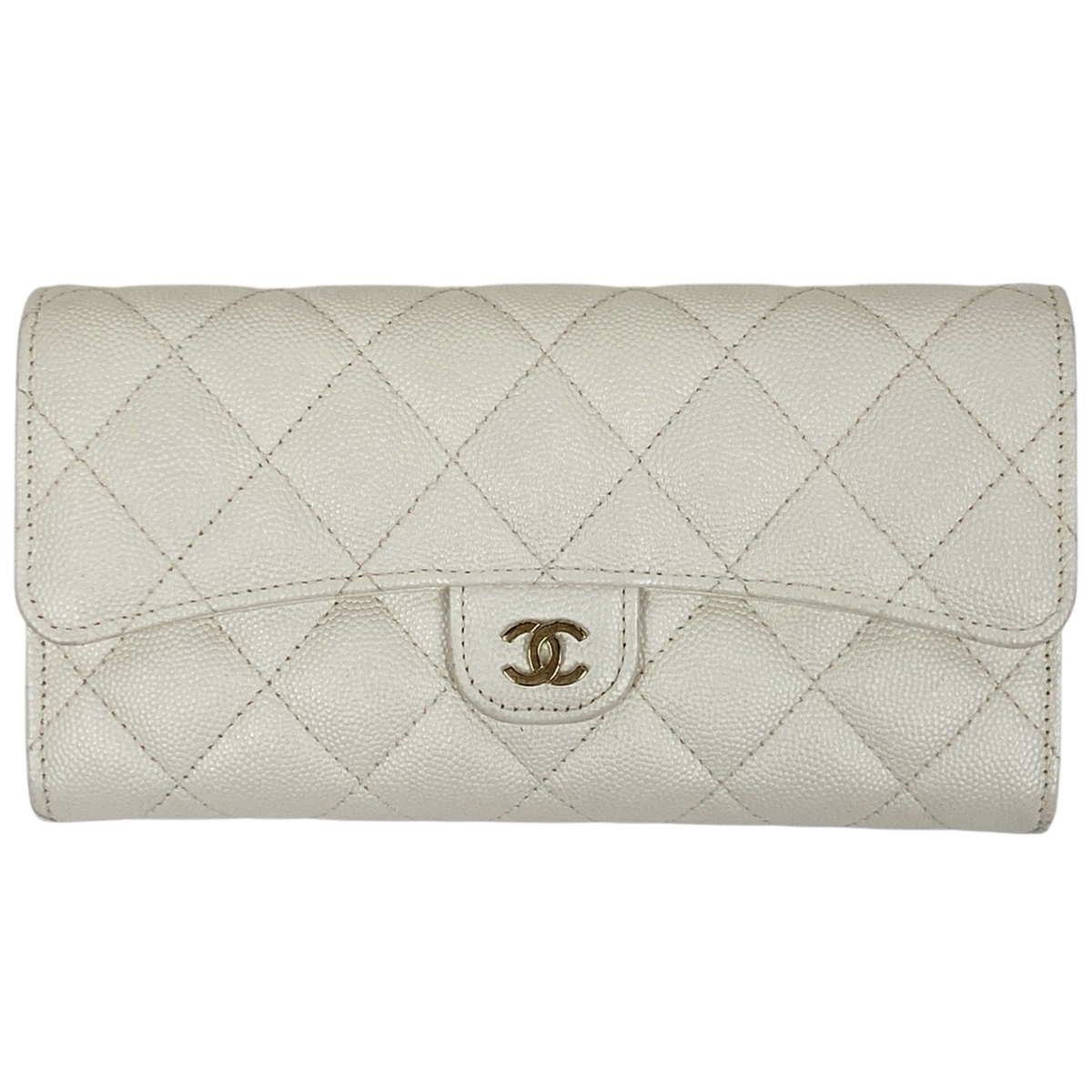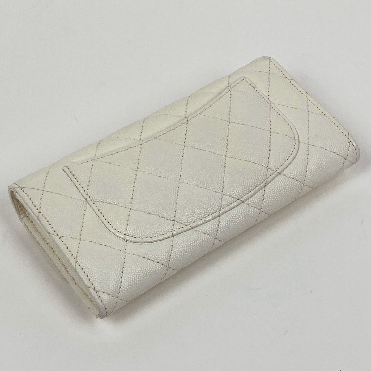 | シャネル CHANEL ココマーク 二つ折り 長財布 マトラッセ 長財布 キャビアスキン ホワイト レディース 【中古】 |