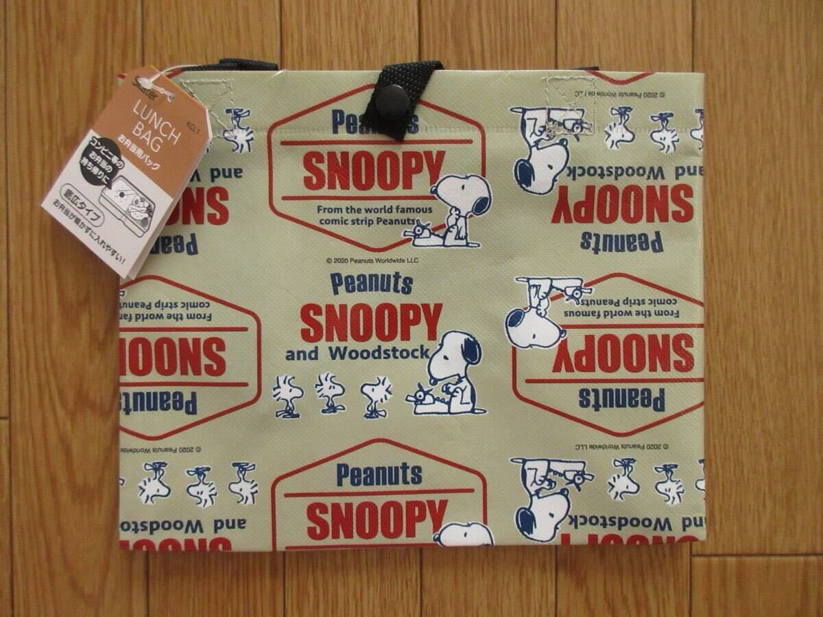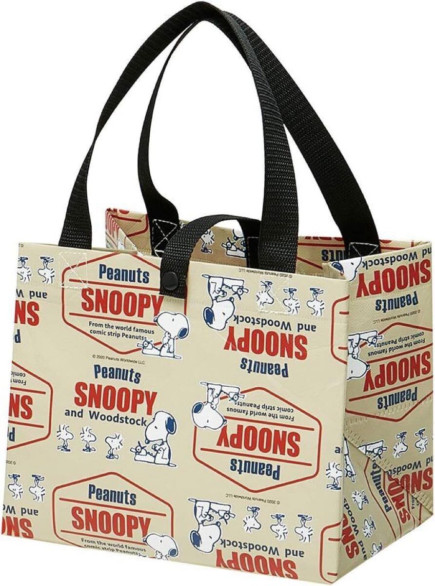 スヌーピー お弁当用バッグ (レトロラベル) 底広 ランチバッグ コンビニバッグ コンビニ弁当 バッグ