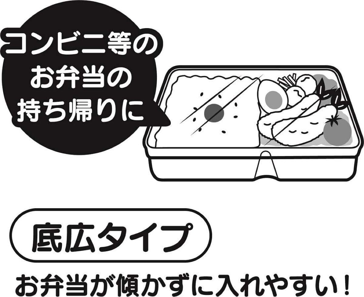 コンビニ等のお弁当の持ち帰りにも便利な底広タイプのお弁当用バッグです。