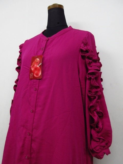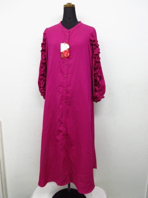t1925 タグ付き未使用保管品 &LOVE ワンピース 長袖 前ボタン 羽織りにも フリル ピンク系 サイズS アンドラブ