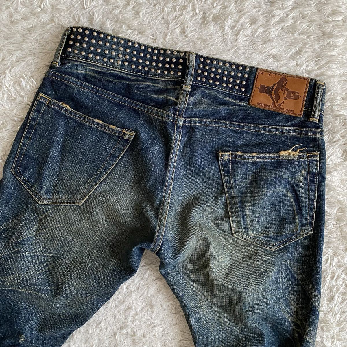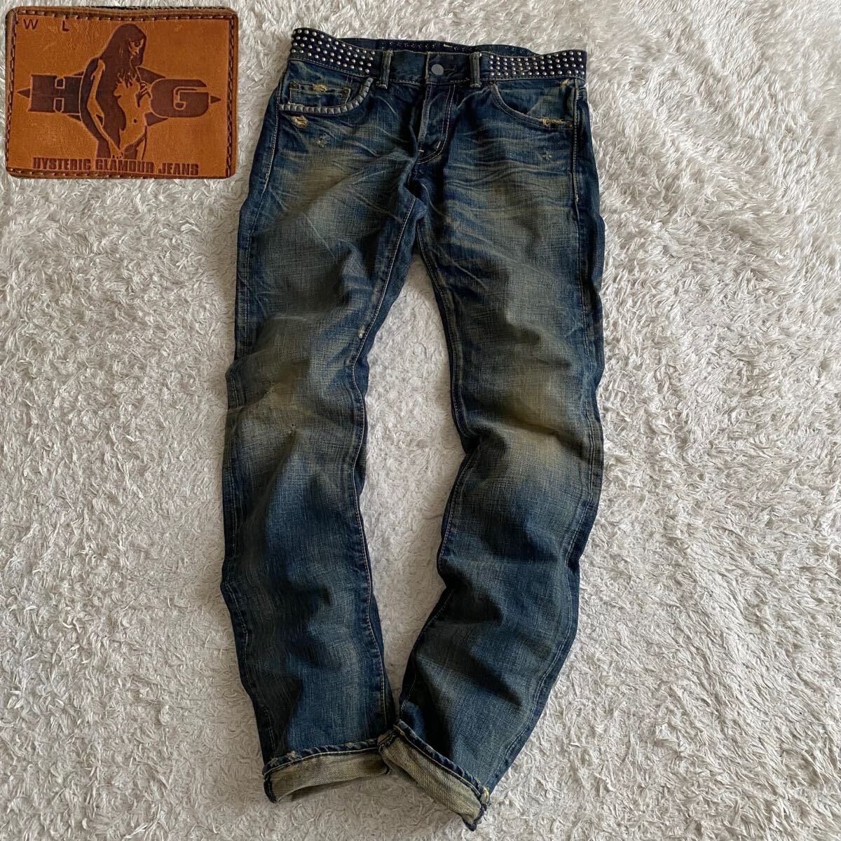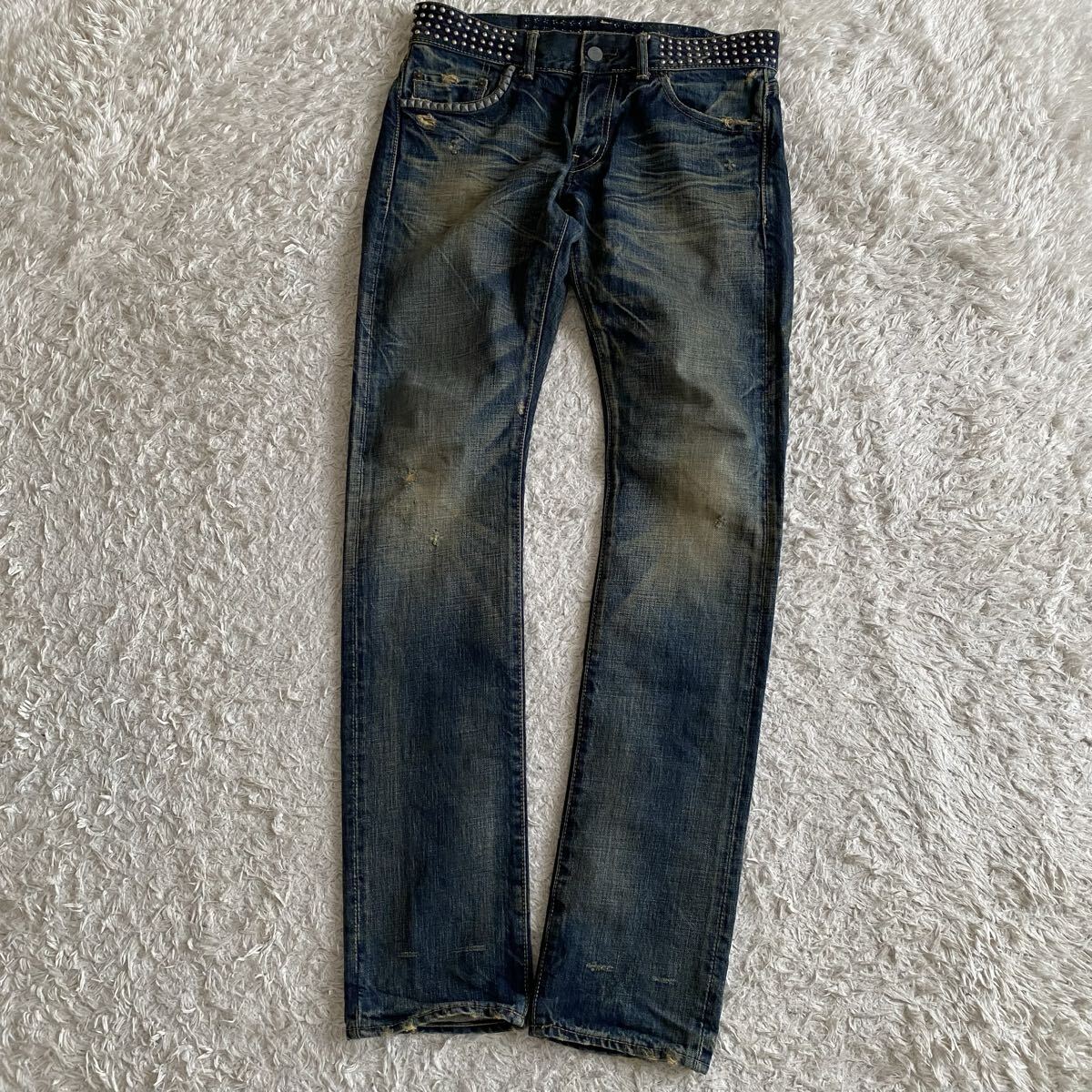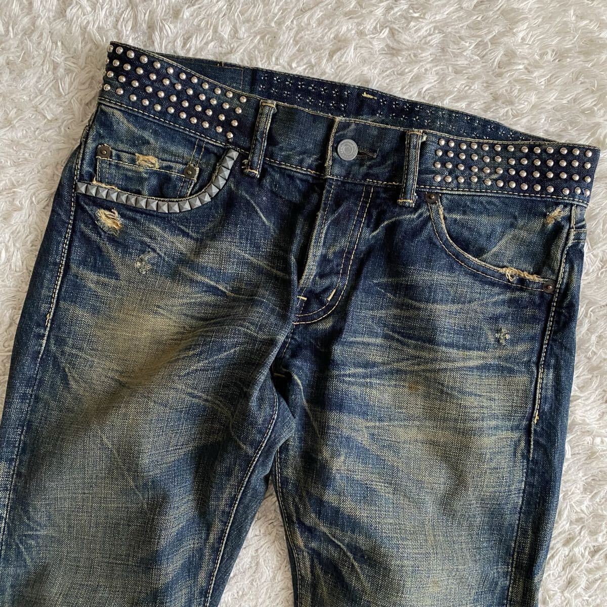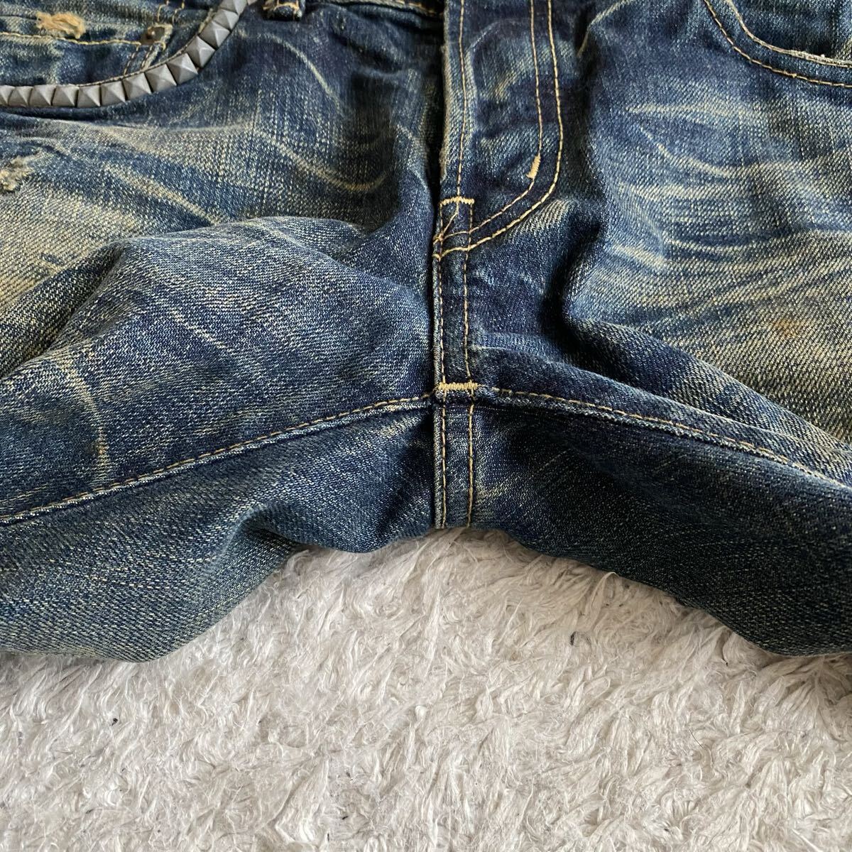 スタッズ USED加工 ユーズド ダメージ加工 ヴィンテージ加工 ビンテージ デニム ジーンズ Gパン ジーンズ ボトムス パンツ アメカジ 鬼ヒゲ 縦落ち ハチノス 4AP-2152