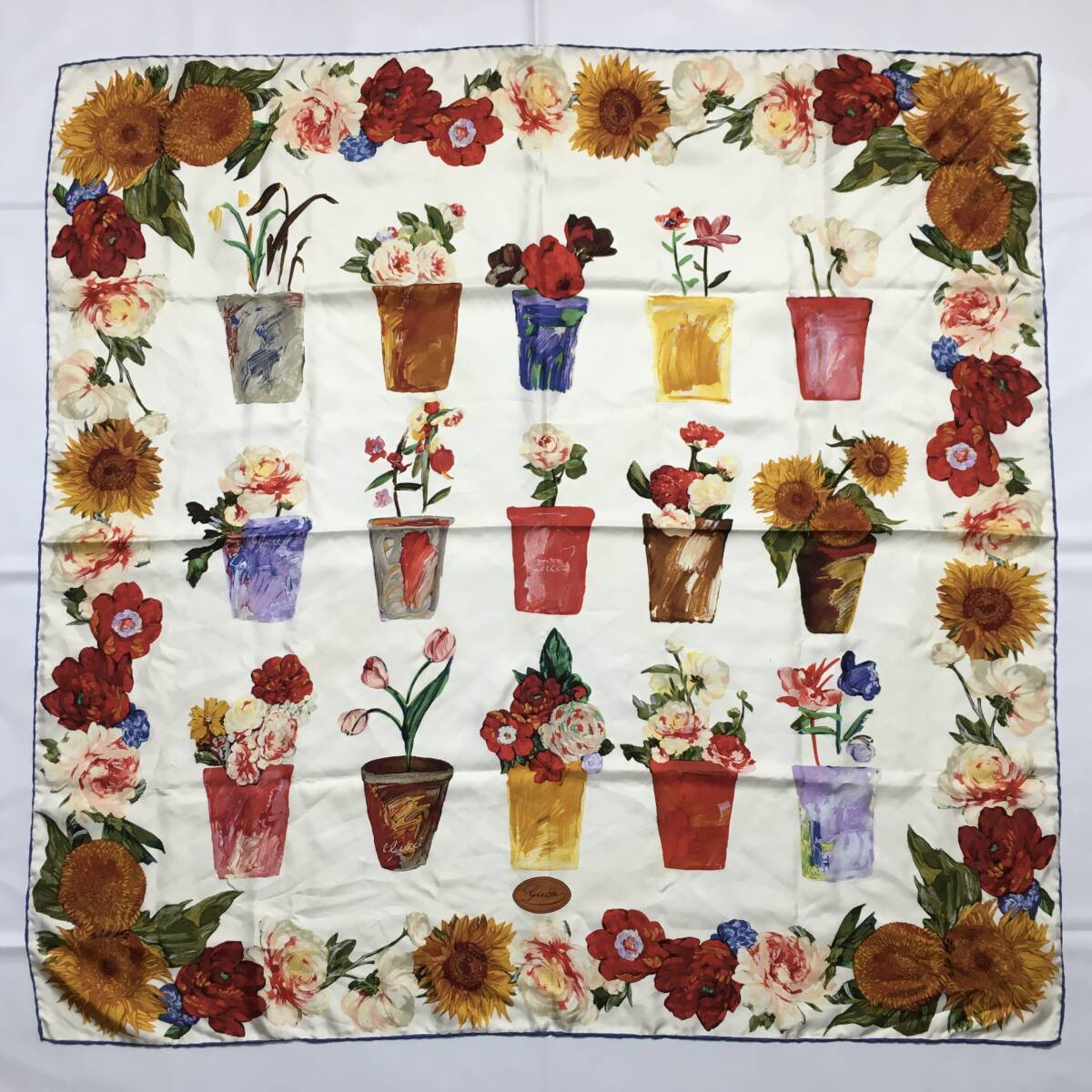 78B332| 【 ブランド名 】GUCCI グッチ 【 カテゴリ 】大判 スカーフ 【 素材 】シルク 【 カラー 】マルチカラー ホワイト 【 その他 】花柄 【 付属品 】- 【 状態 】少々糸ツレあり,僅かな汚れあり ⇒ご購入前に必ず写真にてご確認ください 【 サイズ 】(cm) ※実寸値 縦×横:86×86 《 備考 》 ・出品している商品は鑑定基準を全てクリアした正規品になります。コピー品の類は一切取り扱っていませんのでご安心ください。 ・中古品は商品の状態に合わせて価格を決めていますので低価格の場合もございますが正規品に間違いありません。 ・商品の状態につきましてはこれまでの経験に基づき評価させていただいておりますが、あくまで個人の主観となりますので神経質な方は購入をお控えください。 ・出来る限り現物の状態が分かるように出品しておりますが記載のない不明点等ありましたらお気軽にコメントいただければと思います。