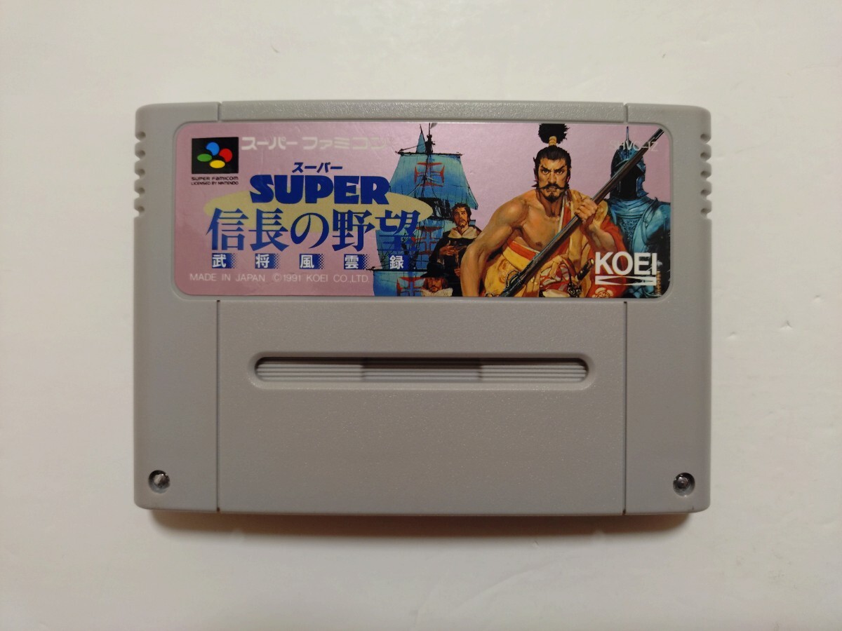 スーパーファミコンソフト【スーパー信長の野望・武将風雲録】です。