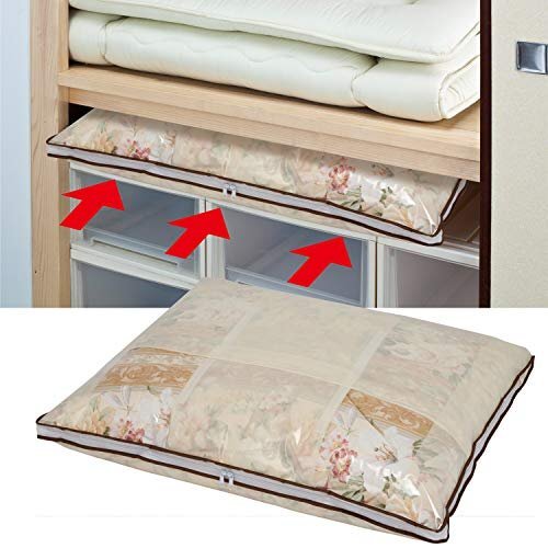 薄型収納:羽毛布団がスリムに収納できるから、押し入れやクローゼットのすき間、ベッド下にも収納できます。