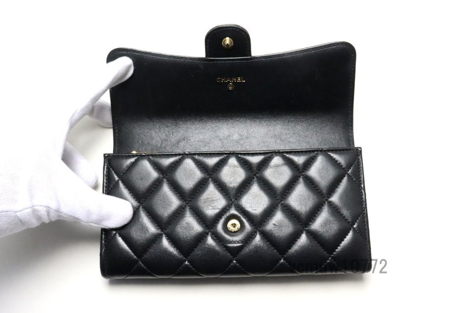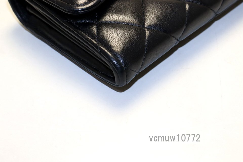 希少美中古■CHANEL 29番台 マトラッセ GD金具 レザー 2つ折り長財布 シャネル■0904aw3158-1M