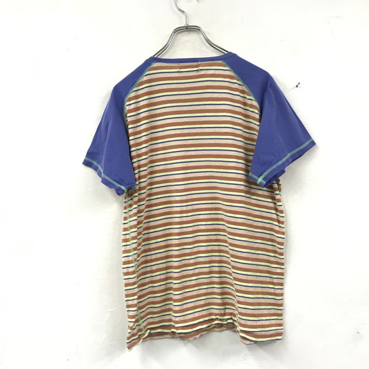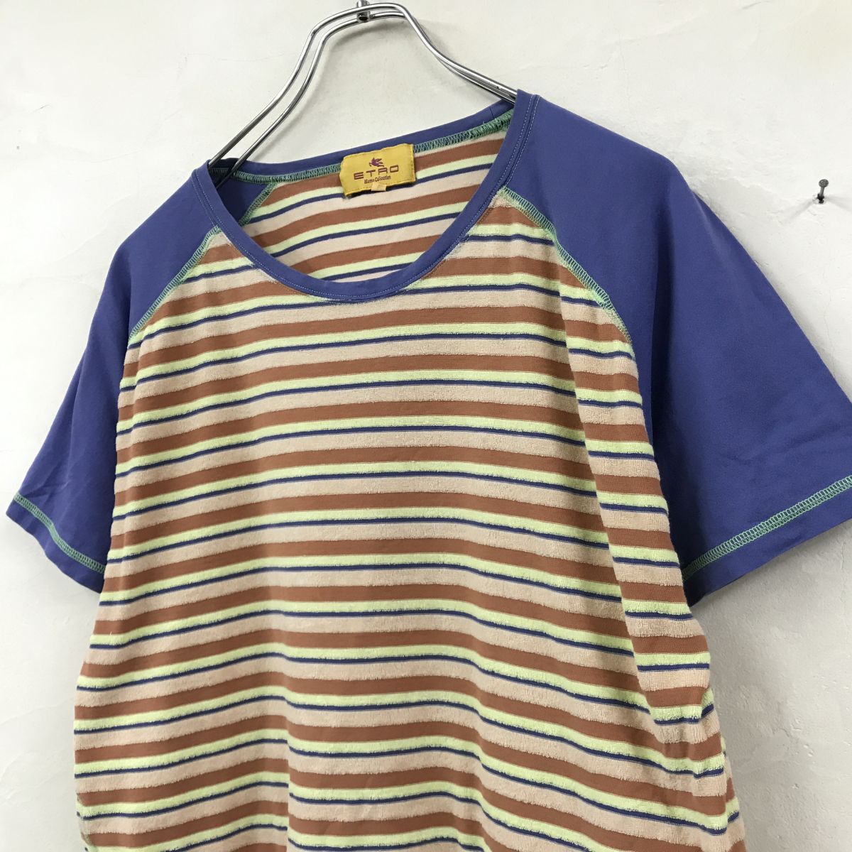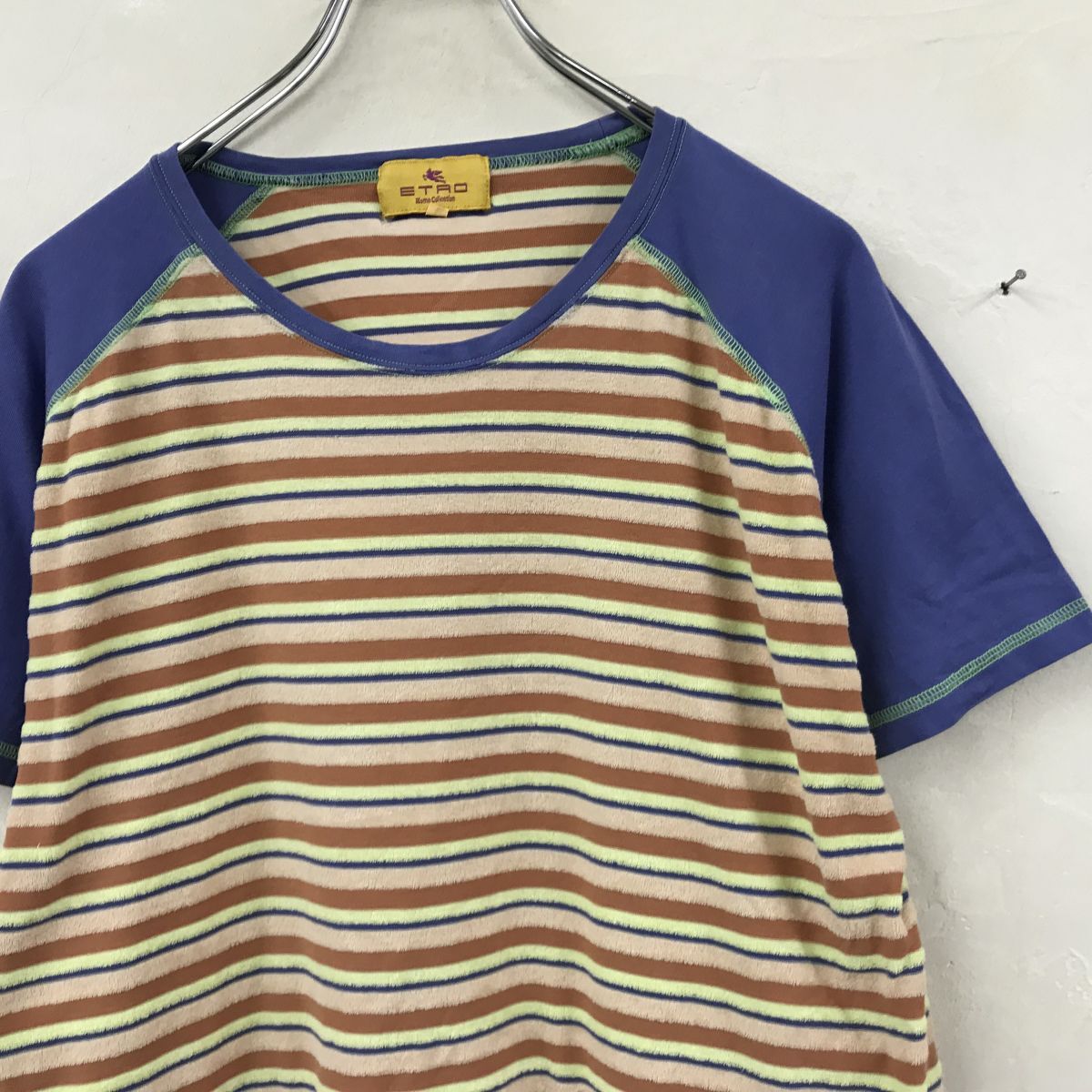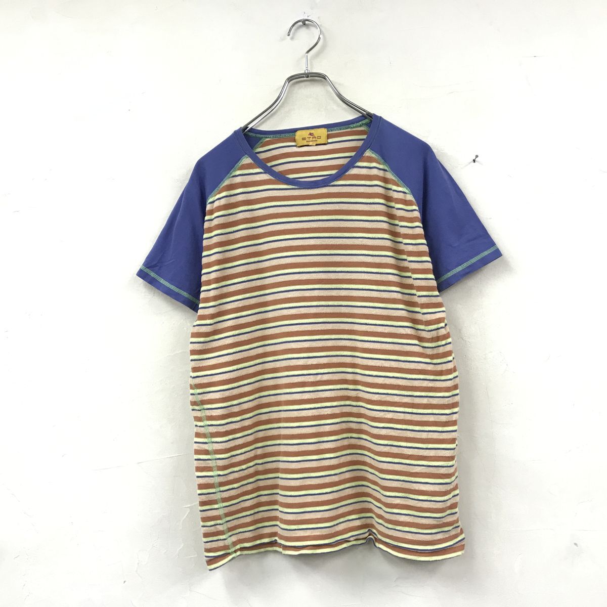 2K1051-N◆old◆ETRO エトロ 半袖Tシャツ カットソー ラグラン パイル生地 ◆sizeL マルチカラー ボーダー コットン100