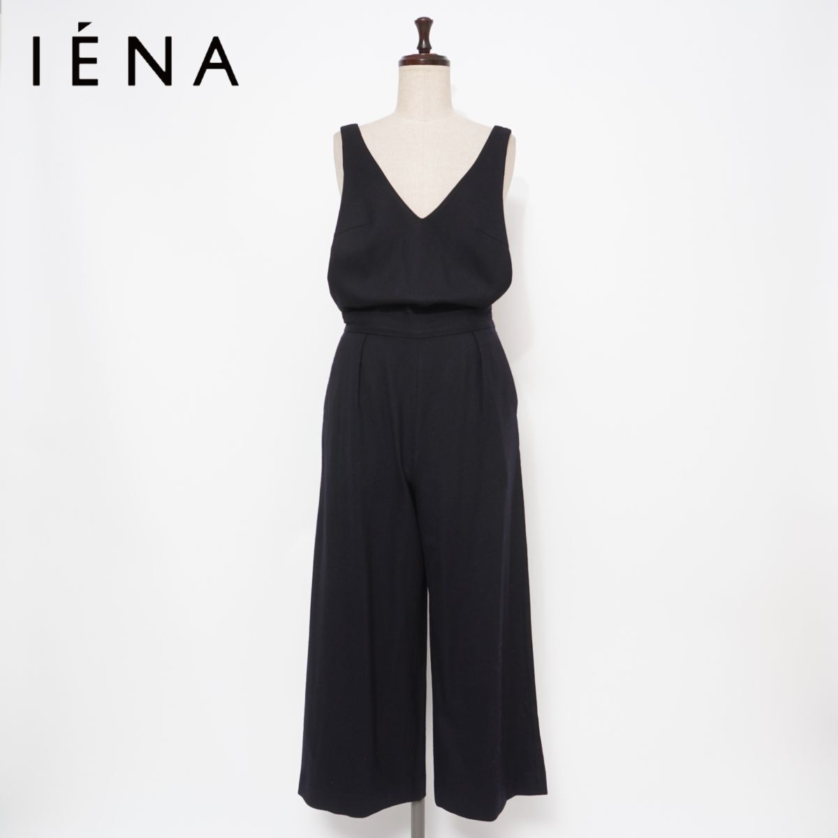 美品 SLOBE IENA スローブイエナ ウール混 2wayオールインワンサロペット ワイドパンツ レディース ネイビー 紺 サイズ36*FD977