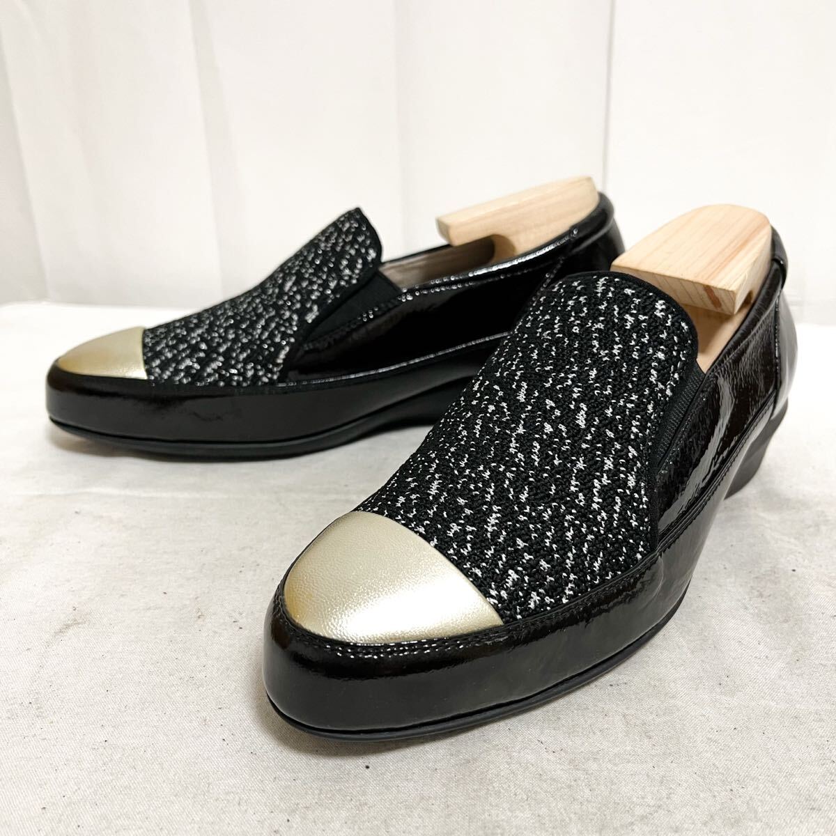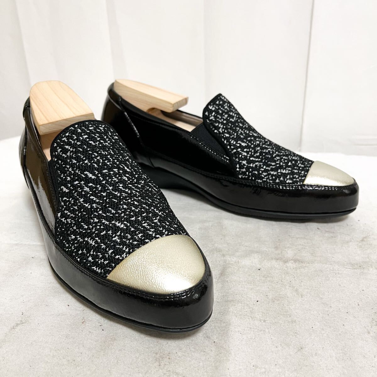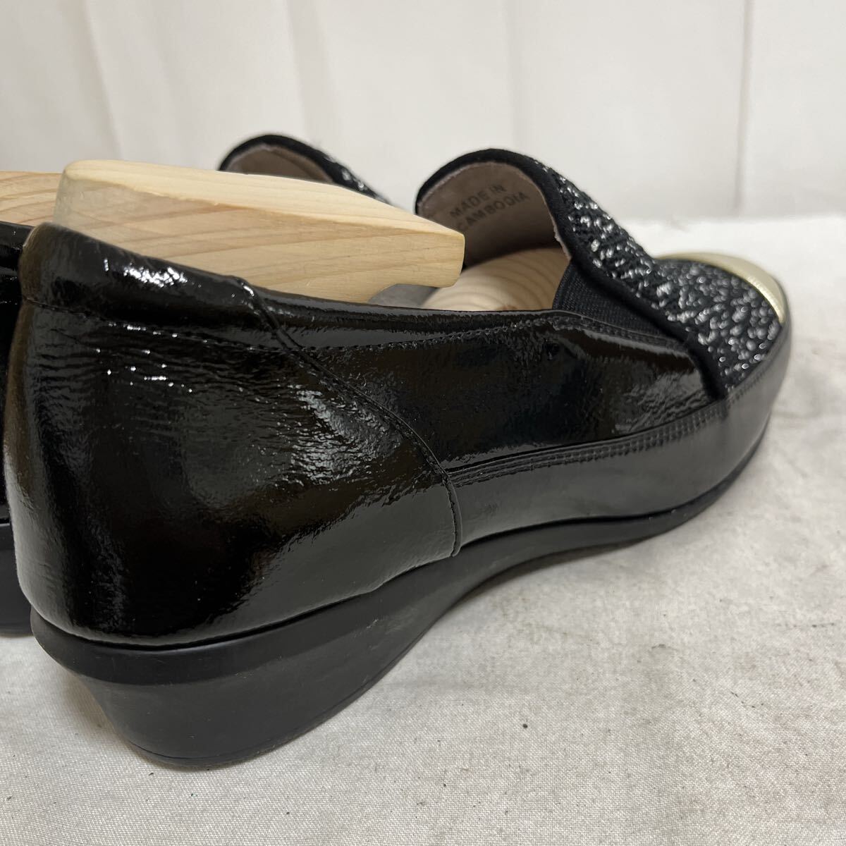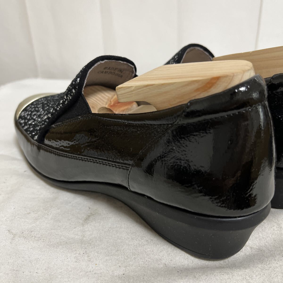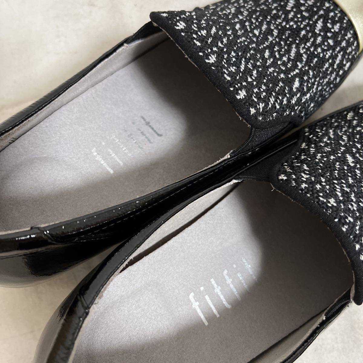 和833★① 美品 fitfit フィットフィット スリッポン カジュアルシューズ 切替 エナメル 23.5 ブラック レディース