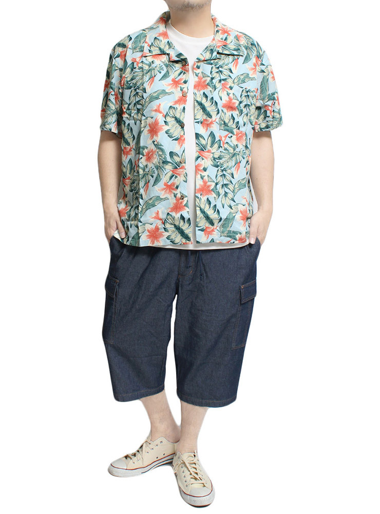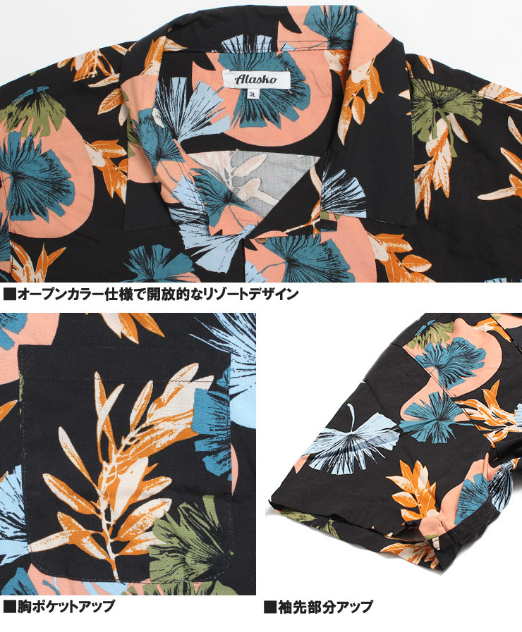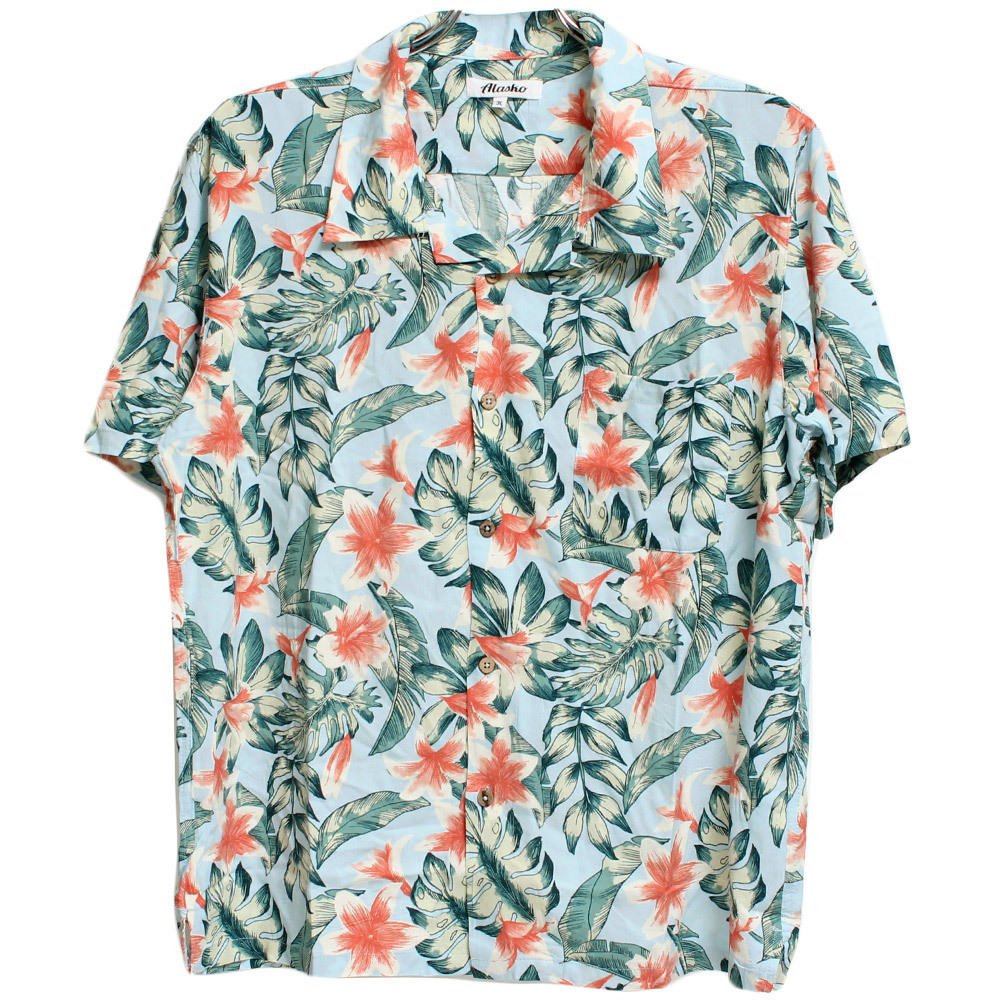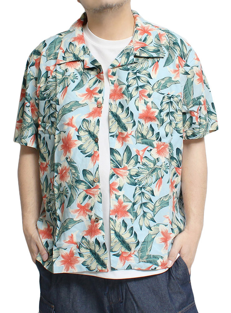 | 商品名 | 【新品】 L ブルー アロハシャツ メンズ 大きいサイズ 半袖シャツ レーヨン ボタニカル 花柄 和柄 オープンカラーシャツ |
