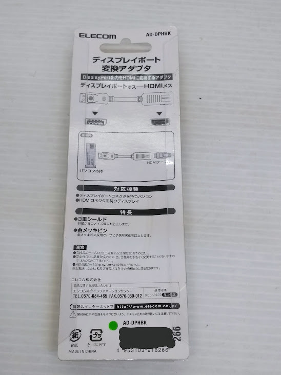 | ●(未使用品 )ELECOM エレコム DisplayPort (ディスプレイポート) - HDMI 変換アダプタ AD-DPHBK | |