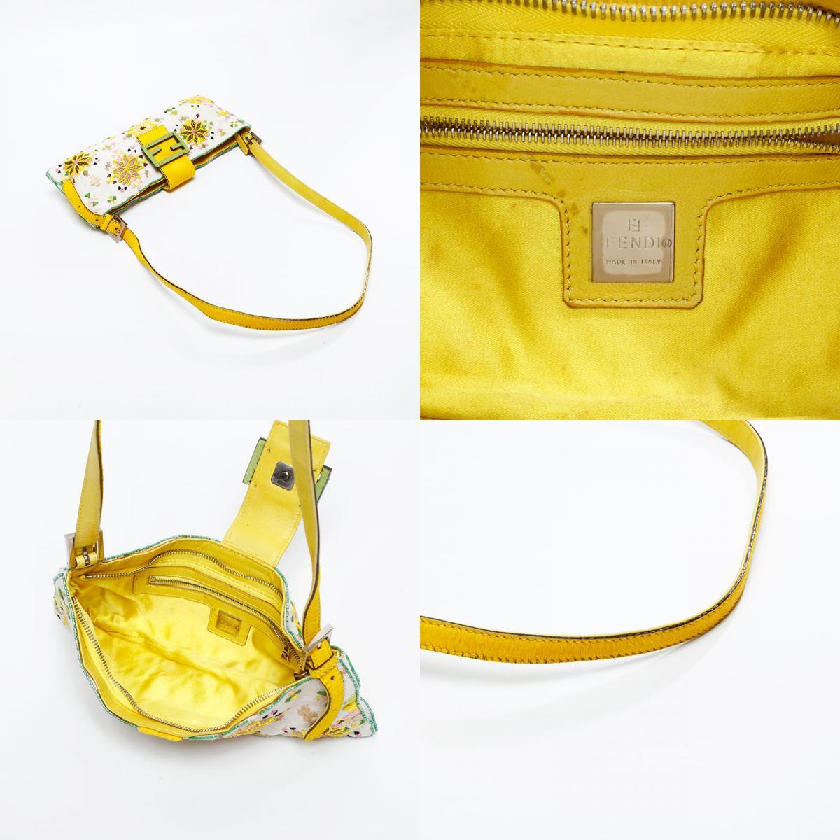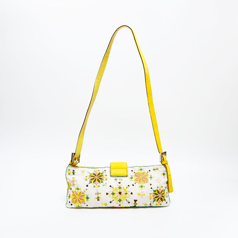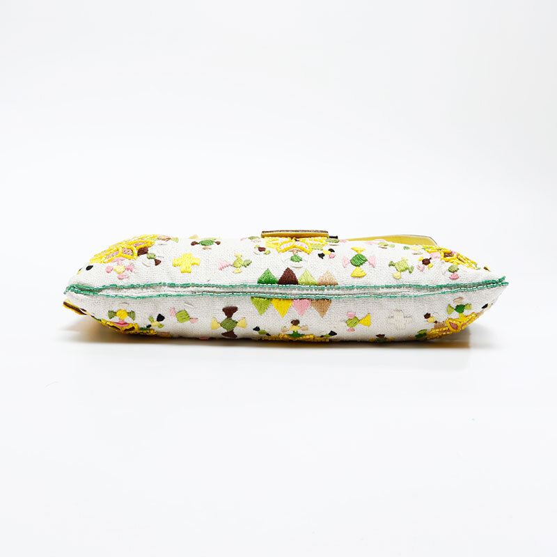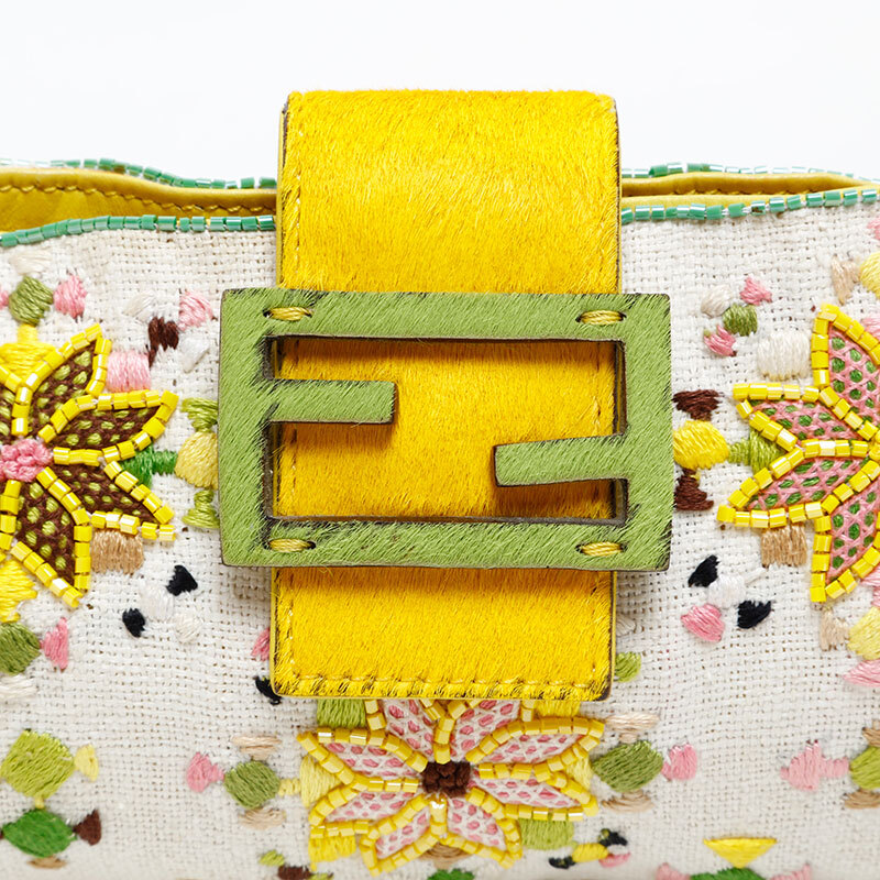 フェンディ FENDI ショルダーバッグ ビーズ フラワー マンマバケット ホワイト