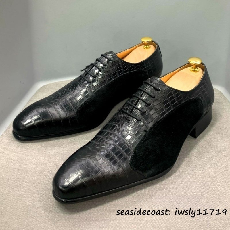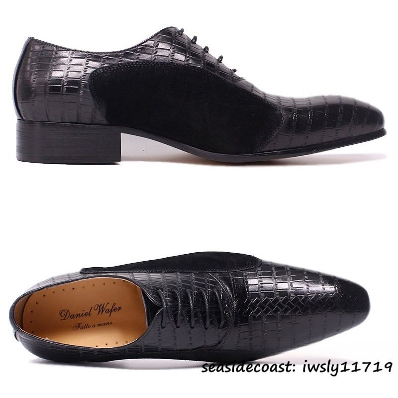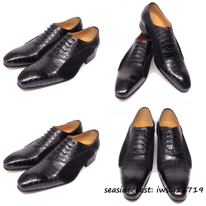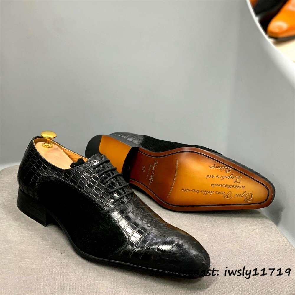 超美品*定価9万 メンズ ビジネスシューズ 押し柄 本革 レザーシューズ 職人手作り 紳士靴 上質牛革 フォーマル 革靴 新品 ブラック 25.5cm