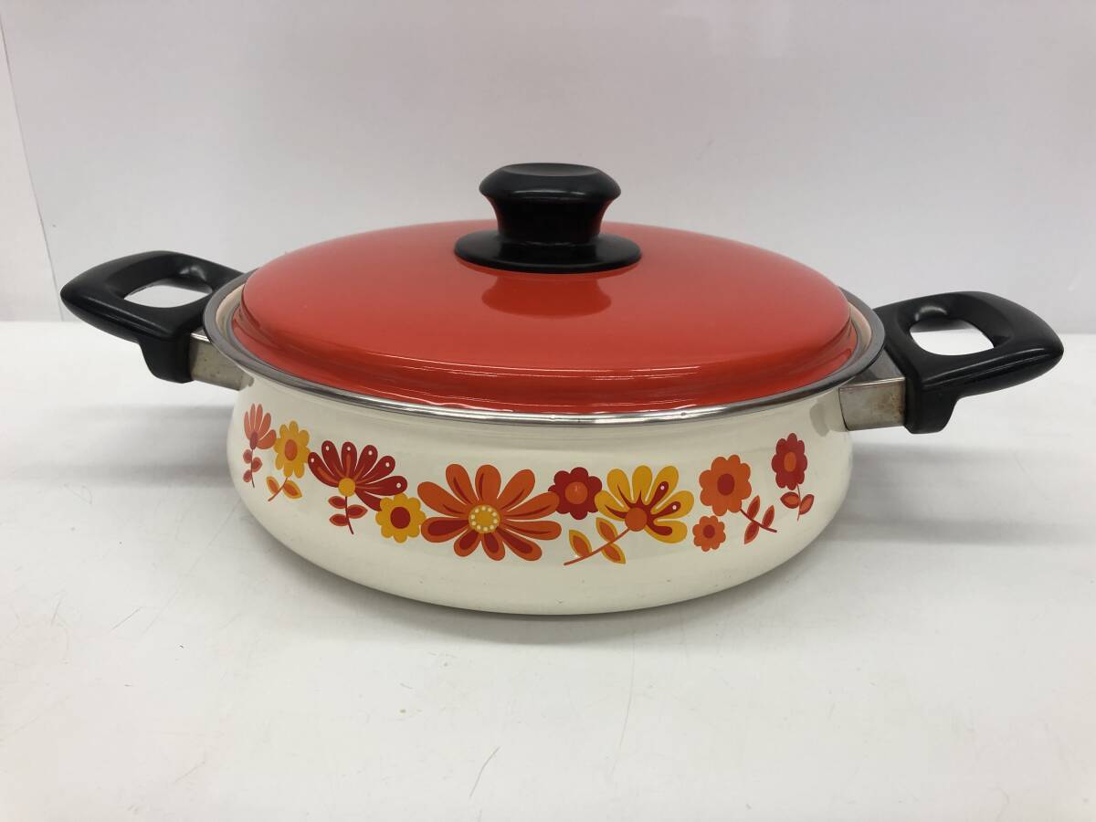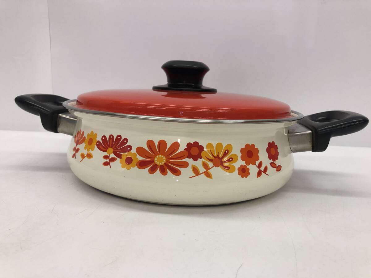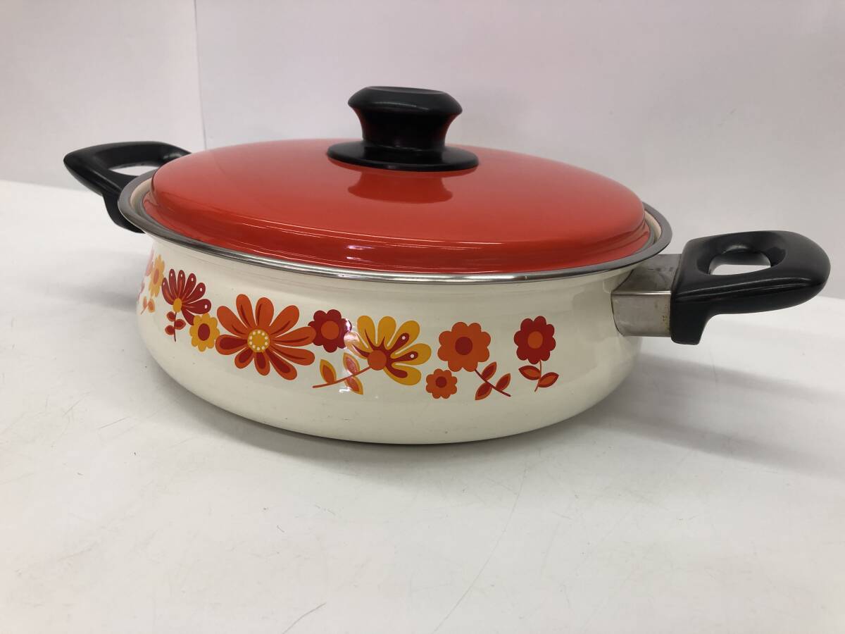 SANKO WARE サンコーウェア ホーロー鍋 琺瑯 両手鍋 調理器具 キッチン雑貨 昭和レトロ レトロポップ インテリア アンティーク 花柄 |