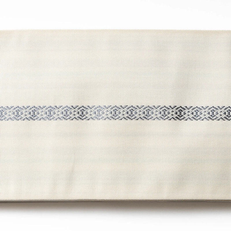 | 刀の下げ緒、帯締め等に使われる「真田紐」をリズミカルに 並べたイメージでデザインされた帯は、通常の半幅帯に比べ 多くの糸を使用し、着物とコーディネートしやすい帯に仕上がっています ナナコ織という組織を用いて織っているため、柔らかくしなやかな 風合いに仕上がり、結び初めの締め心地も良いのが特徴です 経糸の密度が高いため、しっかりとした地厚の帯で、一度締めたら 緩みにくいのが特徴です。縫い合わせたのではなく、袋状に織られて いるので締め心地に安定感があります。 春夏秋冬どの季節にも使え、小紋や紬、浴衣などのカジュアルなシーンで お使い頂けます。リバーシブルで多彩なアレンジをお楽しみください ■品質表示 ・製造元 博多織 西村織物株式会社 謹製 ・色 真田間道 白よごし ・素材 絹100% ・長さ 約430cm前後 幅:約15cm/4寸 しっかりと織り込まれた博多帯は、絹鳴りが心地よく 一度締めると緩むことがありません。粋でお洒落な 着姿を、お約束します。小紋・紬・単衣の着物・浴衣 その他おしゃれに着用してください。 | ||
