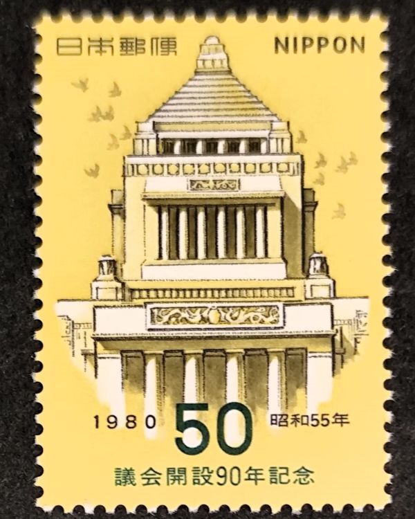 [25090629]【議会開設90年記念】単片「国会議事堂にハト」50円 1980年発行 美品