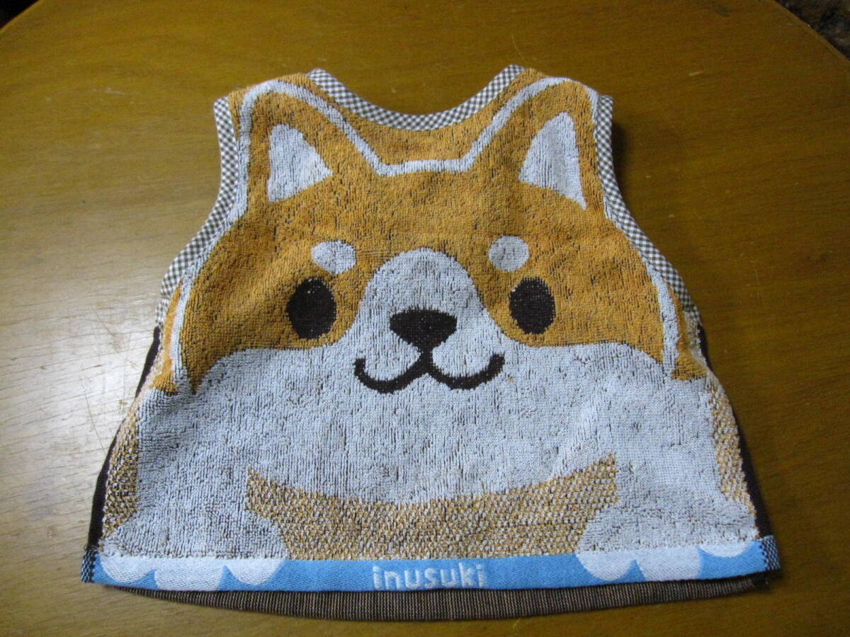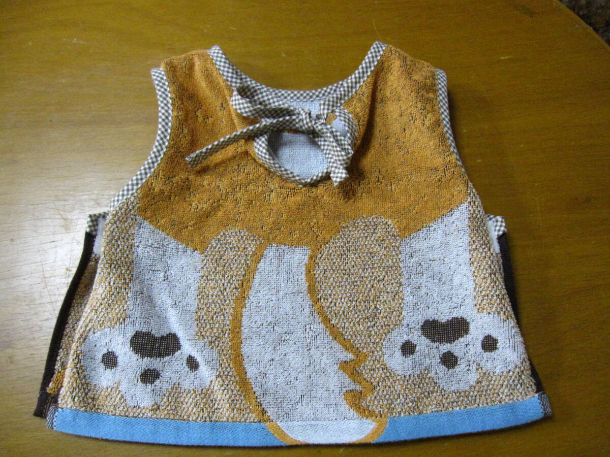ベビー用のエプロンをタオル地で作成。 (フェイスタオルを使用)  ◎可愛いわんこ  (のびしば)