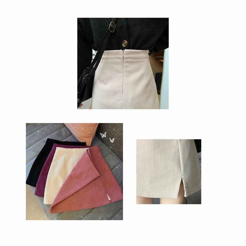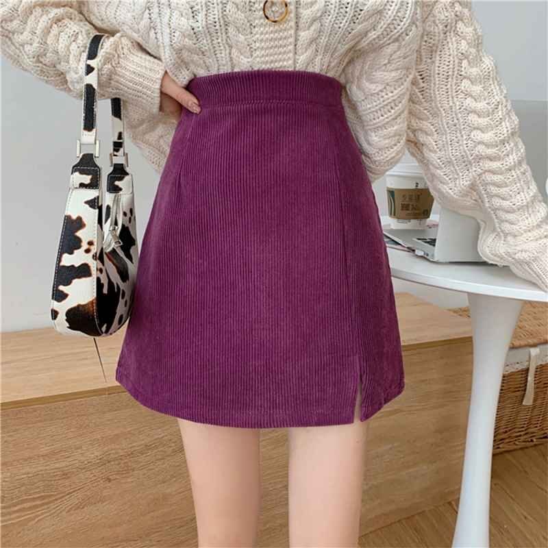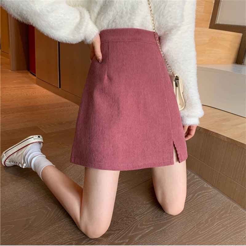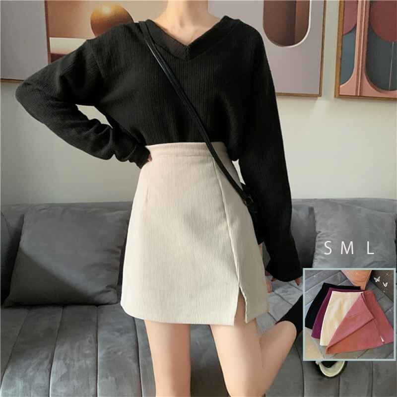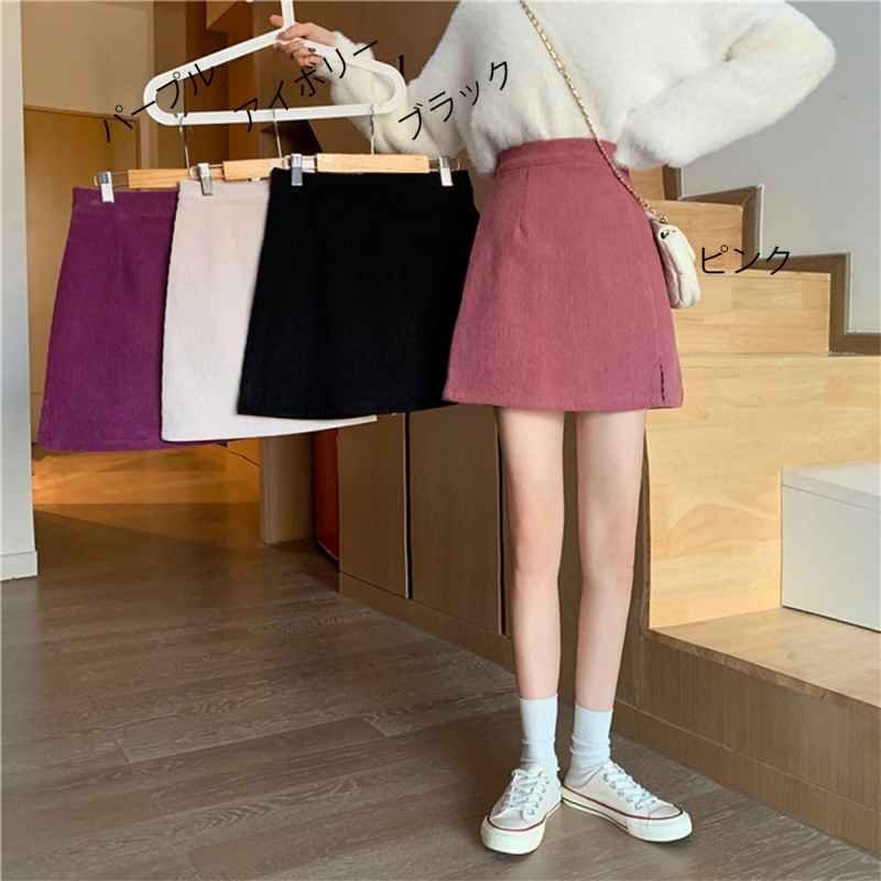 ミニタイトスカート スリット入り Aラインスカート コーデュロイ ハイウエスト S アイボリー