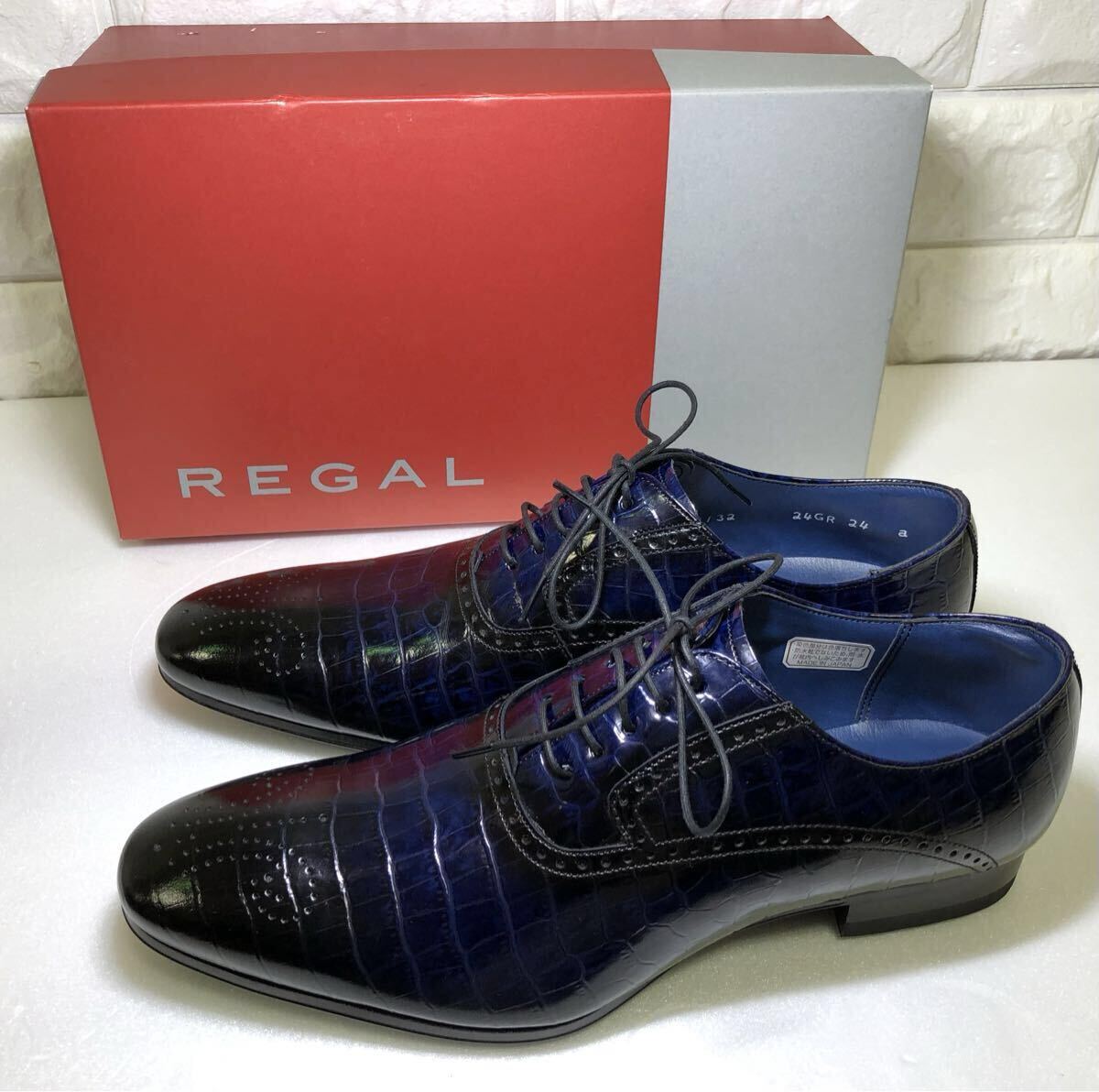 REGAL リーガル 24GRBB プレーントウ メダリオン クロコ 型押し メンズ シューズ 靴 革 レザー ネイビー ブラック 黒 紺