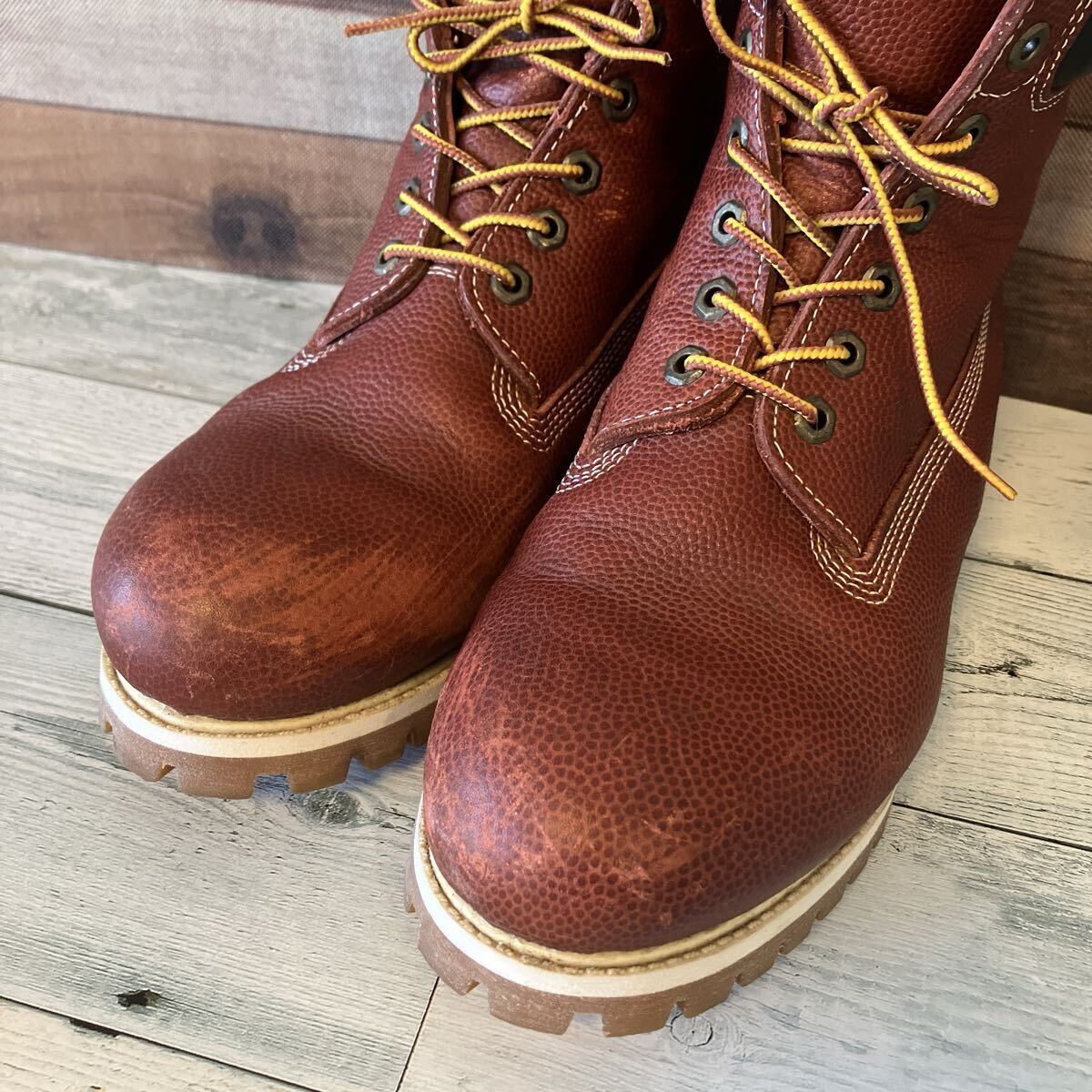 希少 ティンバーランド ブーツ レッド ブラウン フットボールレザー 9.5w 27.5cm