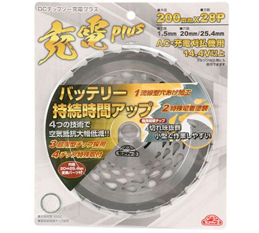 | 仕 様 | ・AC・充電刈払機用。 ・サイズ:200mm。 ・刃数:28。 ・20-25.4変換パーツ付 |