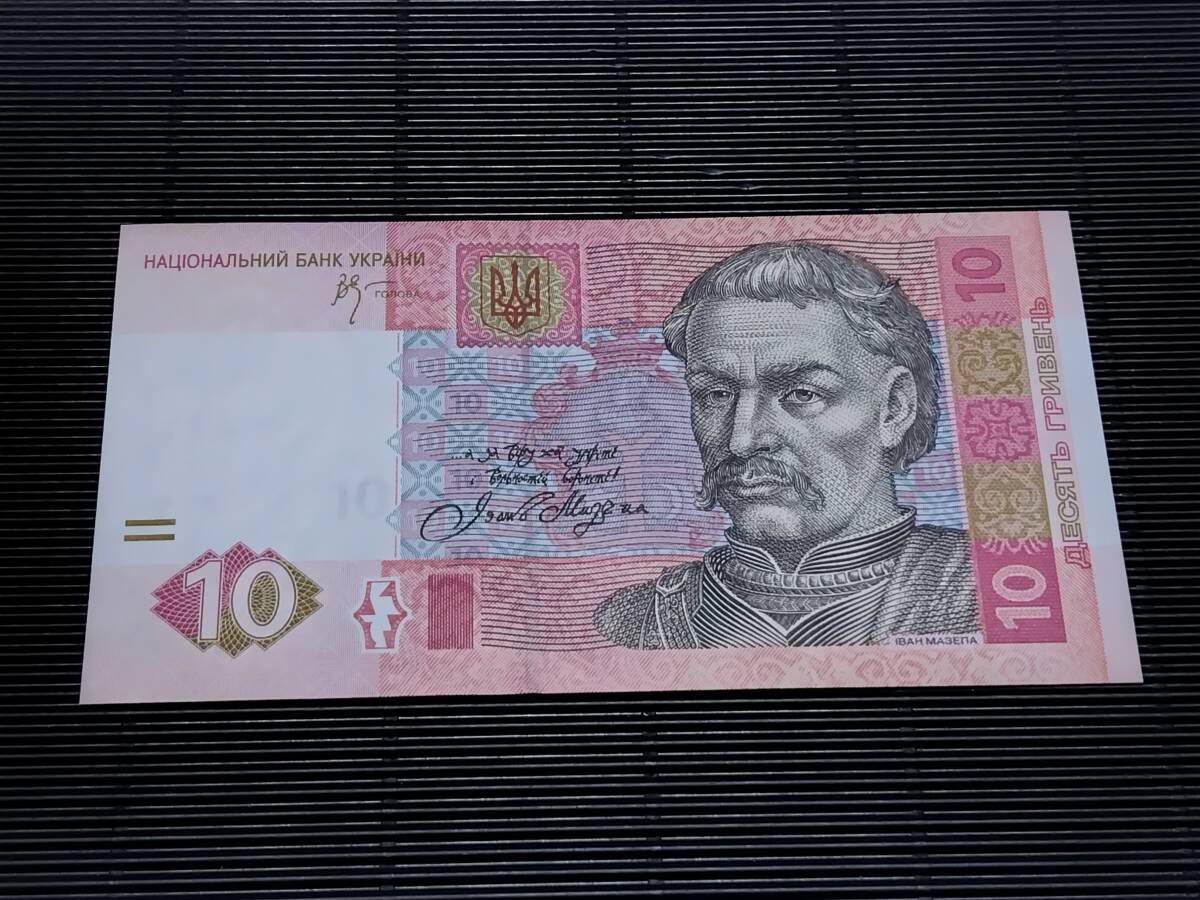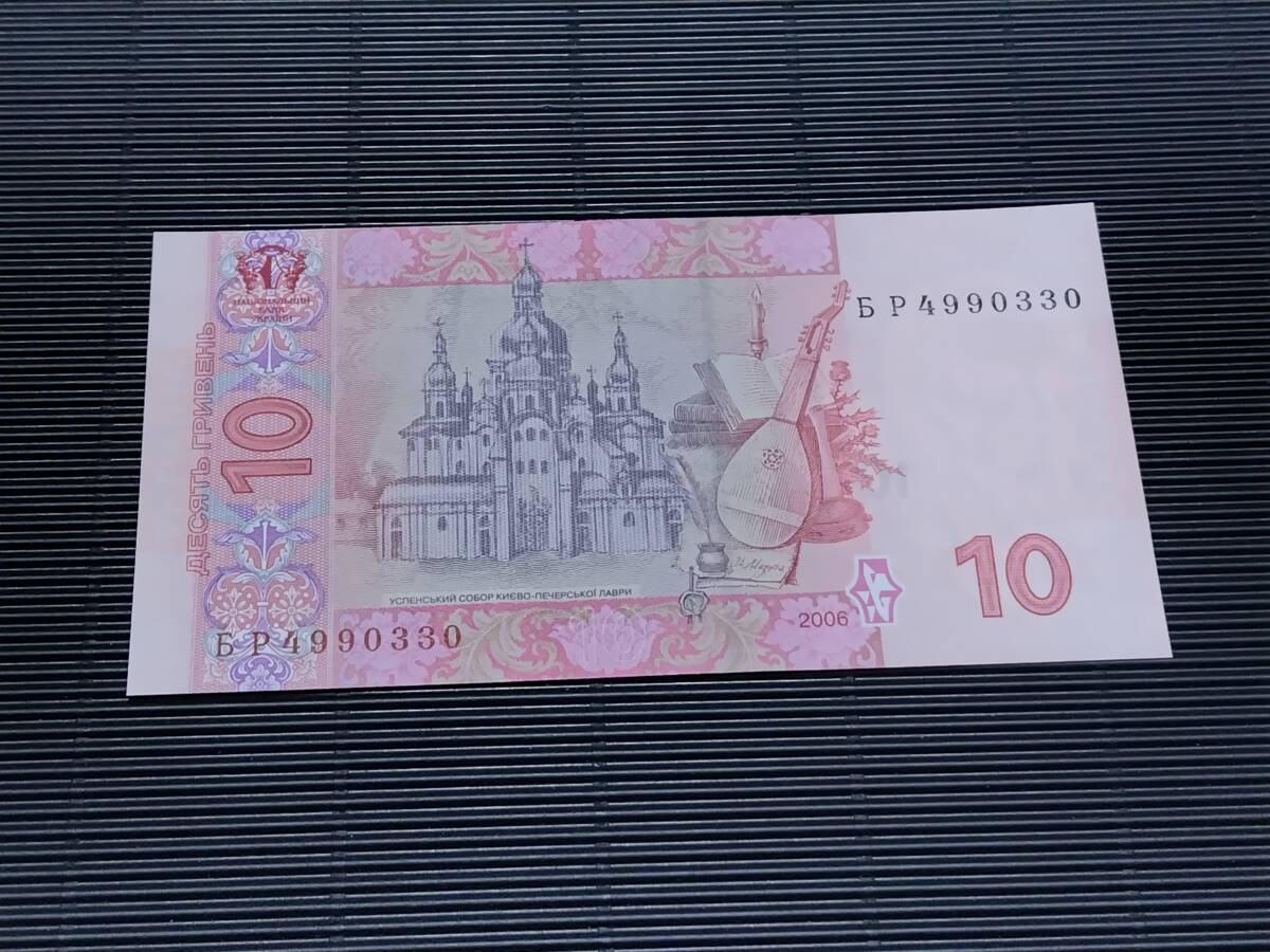 ウクライナ  10 Hriven'札(黒色肖像)   コレクション向けピン札 2006年  未使用~甘い未使用  マンドリン p-119Aa БР4990330