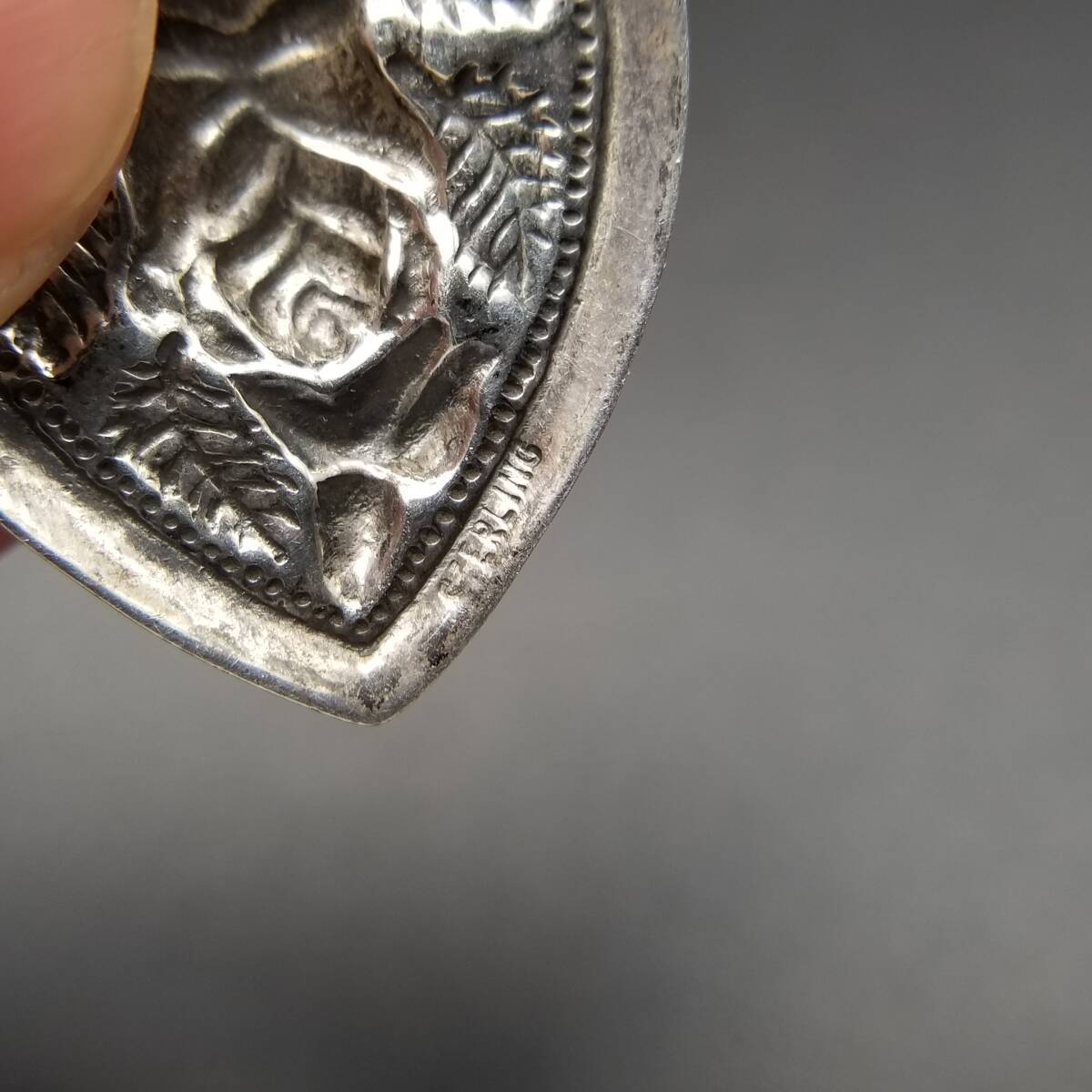 薔薇 立体彫刻 925 シルバー ヴィンテージ ハートチャーム ペンダントヘッド 彫金 銀 バラ フローラル Rose Y19-J