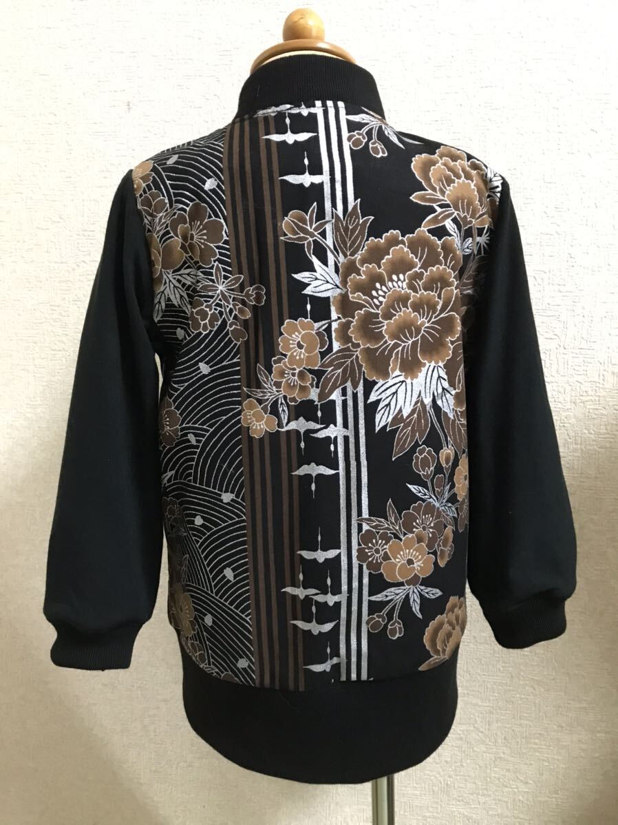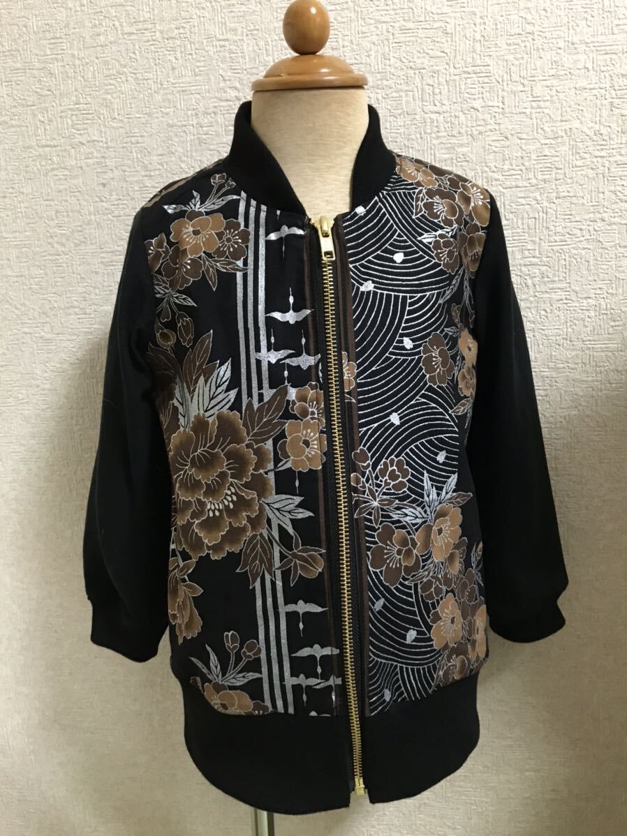 和柄の生地でブルゾンをハンドメイドいたしました。素材は表地は綿です。