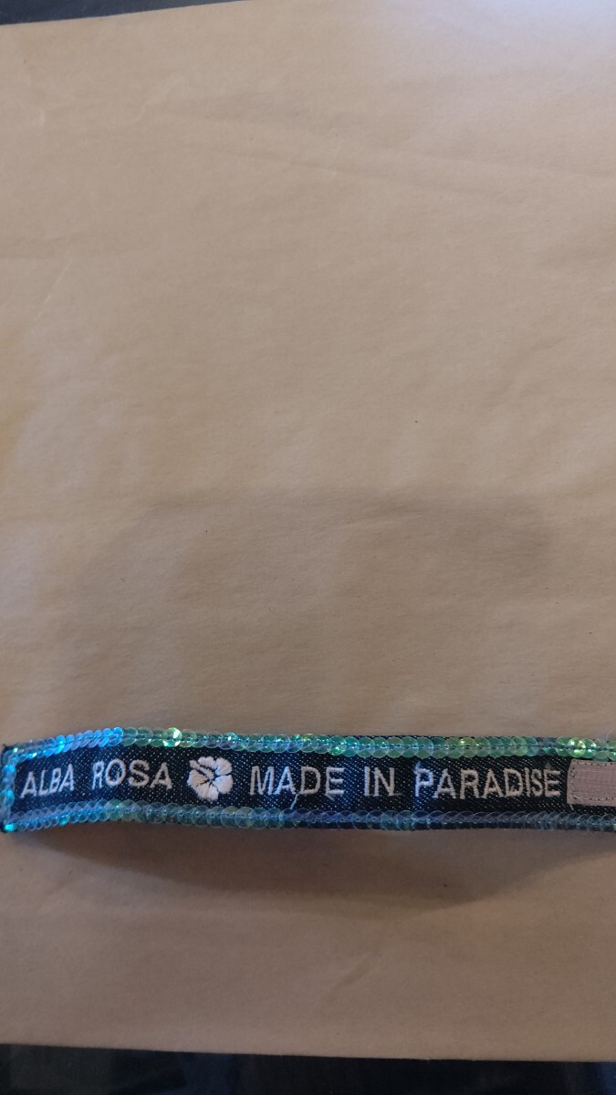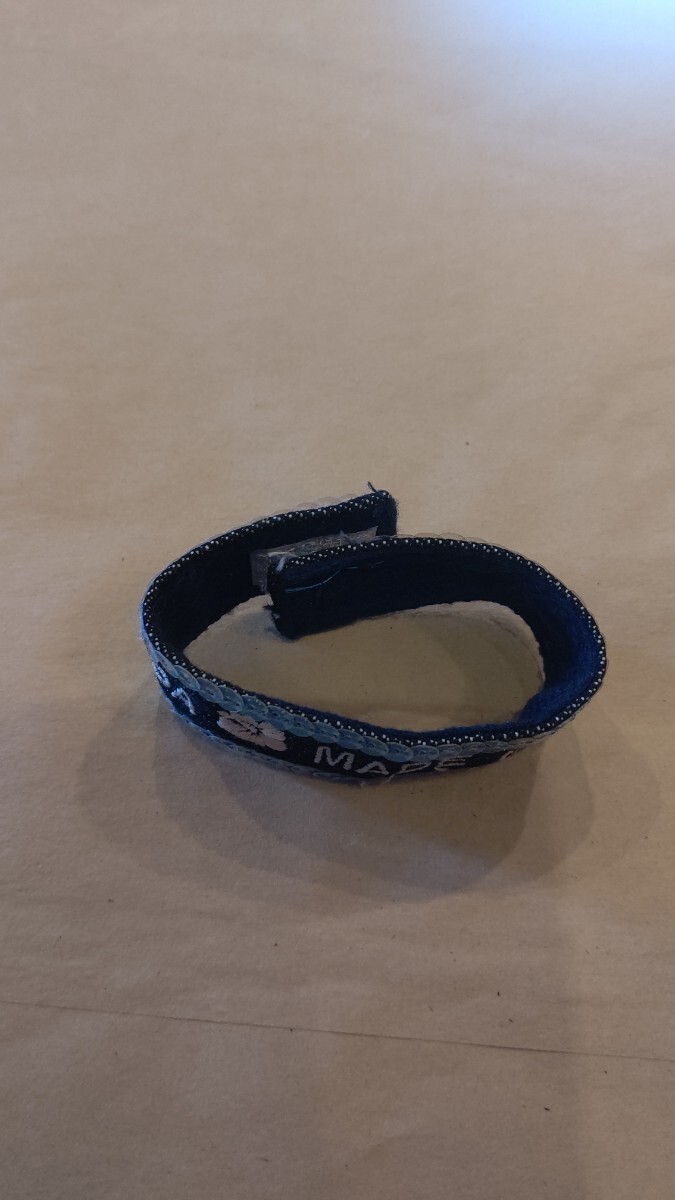 アルバローザLOGOのブレスレットは、デニム地でマジックテープで、最高に合わせやすいです。