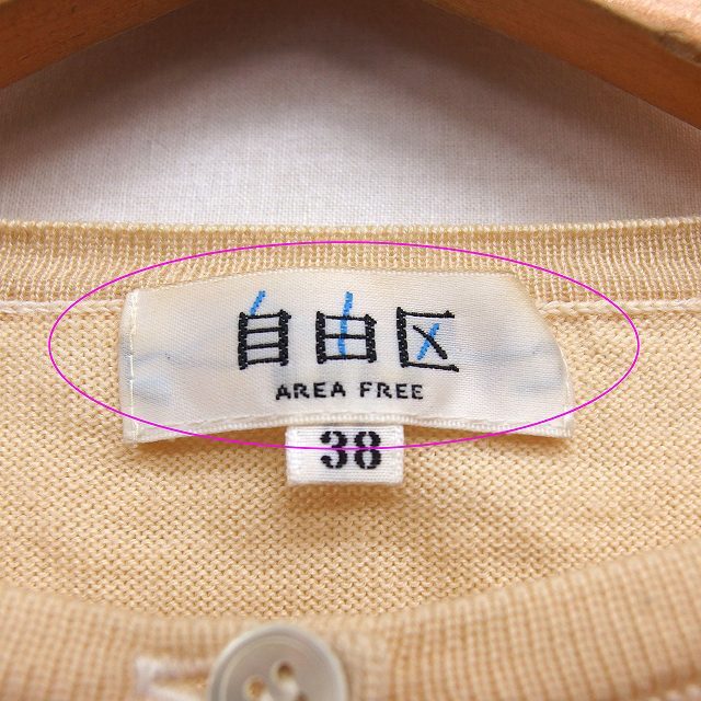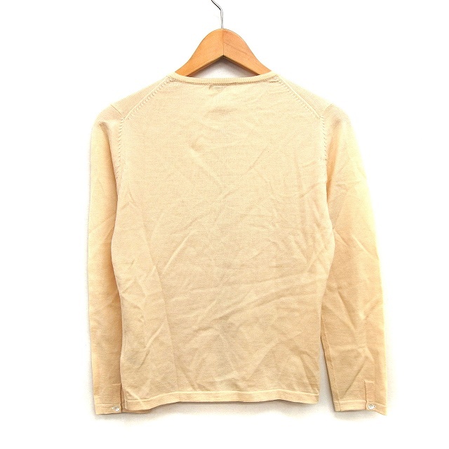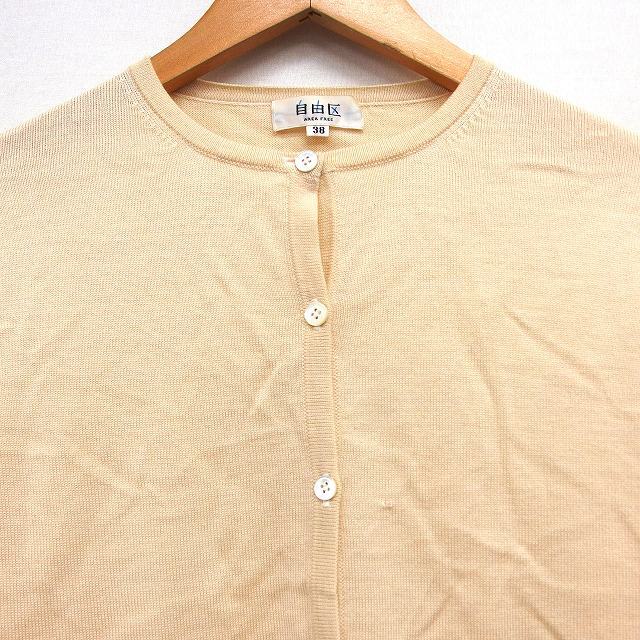 自由区 オンワード樫山 ニット カーディガン 無地 シンプル 切替リブ 長袖 丸首 ウール 毛 38 ベージュ /HT24 レディース