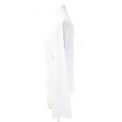 ワンアフター アナザー ナイスクラップ ニット セーター ニットソー ラウンドネック 長袖 ベルスリーブ ストレッチ 起毛 メロウフリル 青