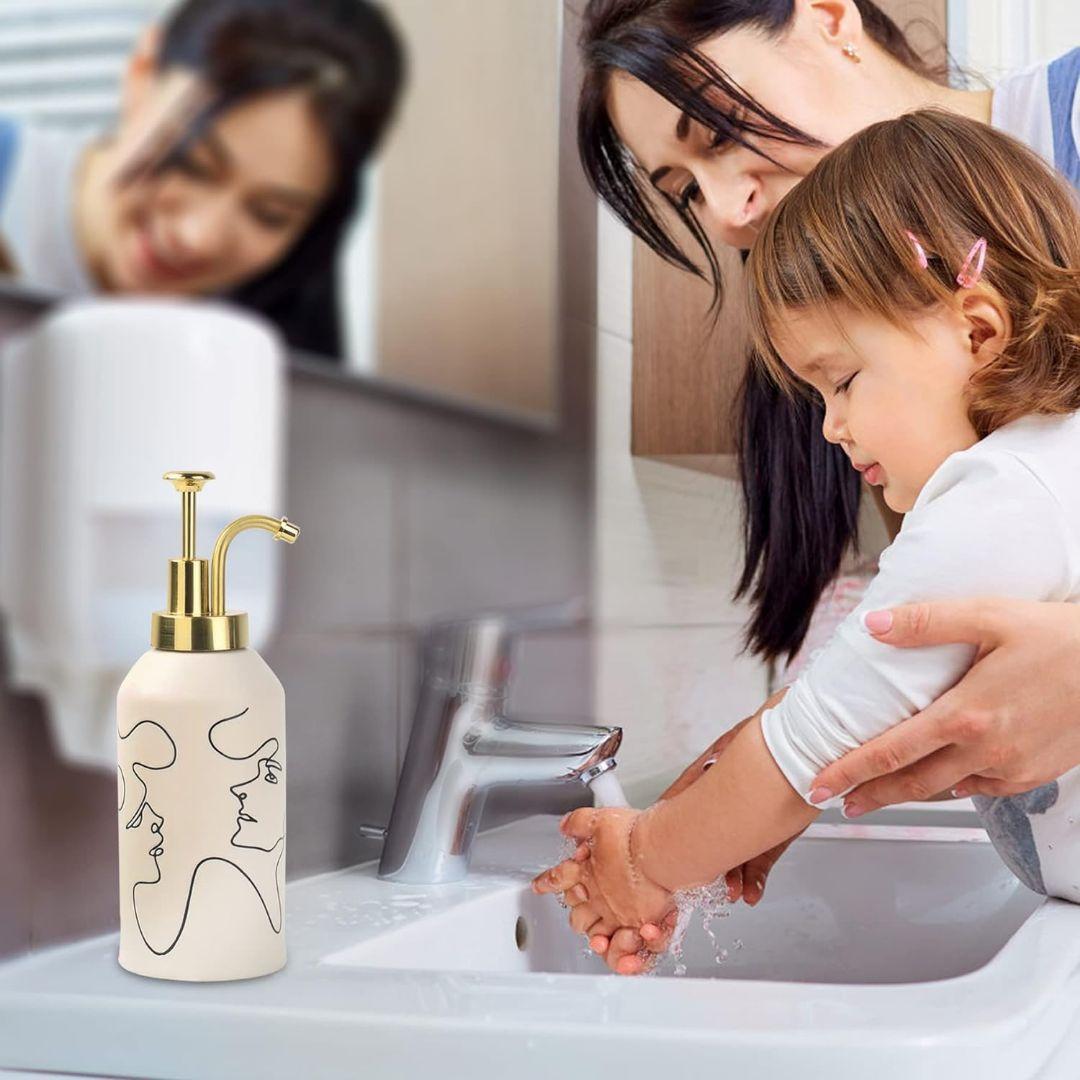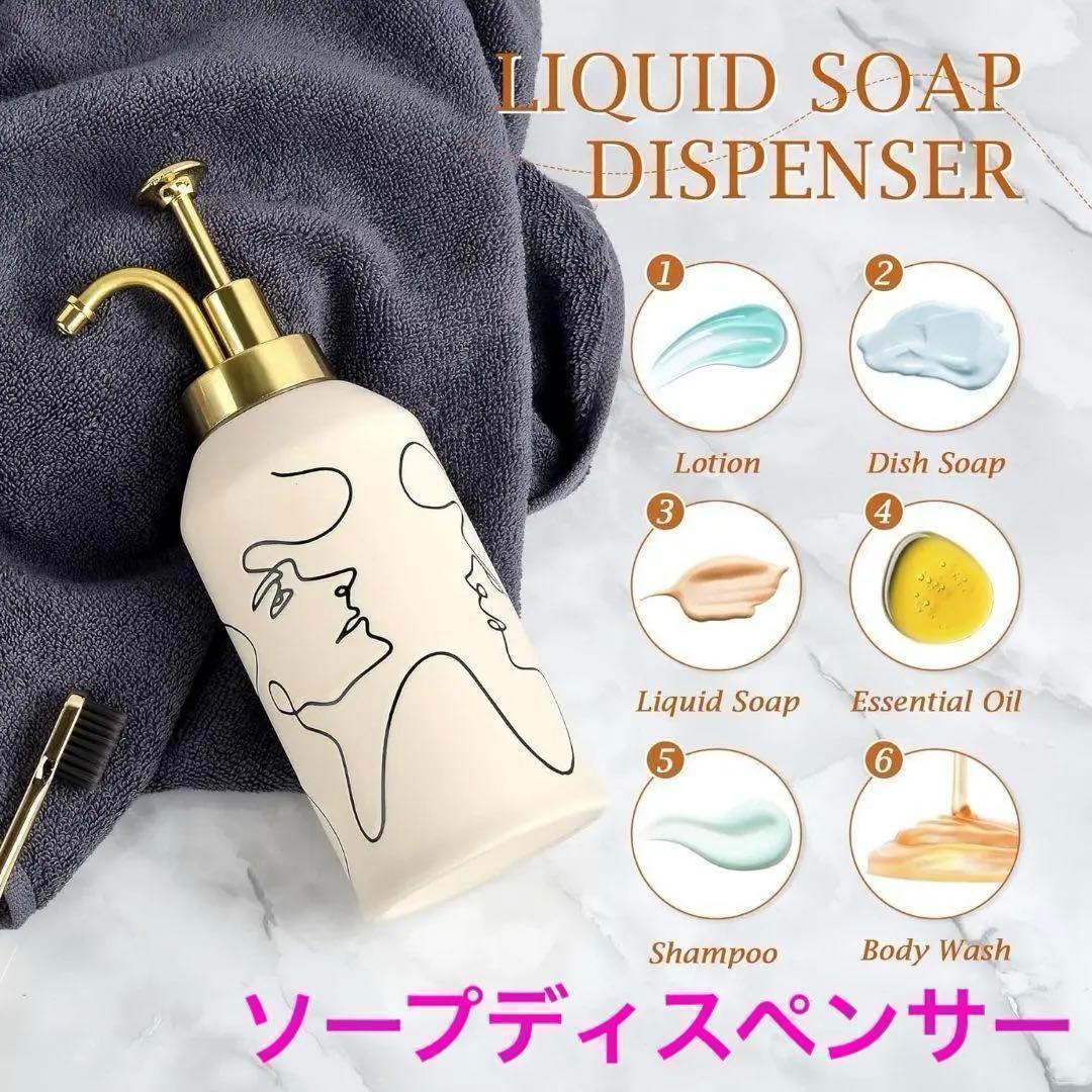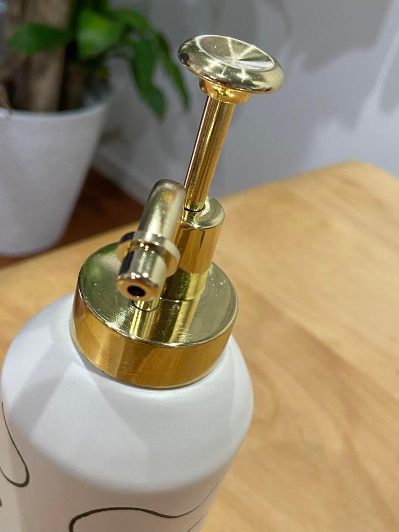 鮮やかなフェイスラインデザインスタイルのソープディスペンサーは、ユニークなゴールドポンプが付いており、より豪華でかわいいです。