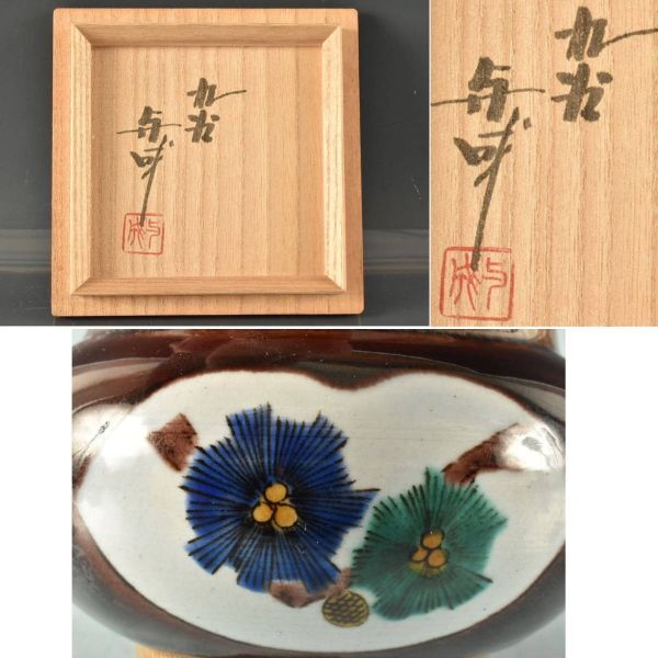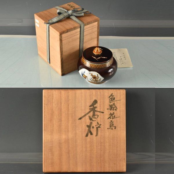 C08804 浅蔵与成 色絵花鳥 香炉:真作