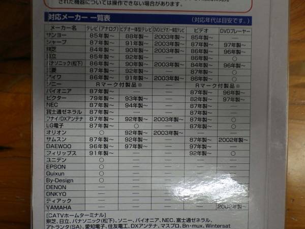 | 商品説明・コメント | ELPA(朝日電器(株))の新品共通リモコンRC-18(BL)です。 テレビやケーブルテレビ、ビデオ一体型テレビ、DVD一体型テレビ、DVD/ビデオ一体型テレビ、ビデオ、DVDプレーヤー等の主な操作が可能な万能リモコンです。 テレビ、CATV又はDVDの最大3台の機器を操作可能なリモコンです。 対応メーカーは写真若しくはメーカーホームページを御確認頂きます様にお願い致します。 念の為此方にも記載致しますが御参考迄にどうぞ。 サンヨー、シャープ、東芝、日立、パナソニック、三菱、アイワ、ソニー、パイオニア、ビクター、NEC、富士通ゼネラル、フナイ、DXアンテナ、LG電子、オリオン、サムスン、DAEWOO、フィリップス、ユニデン、エプソン、Quixun、バイデザイン、DENON、ONKYO、ティアック、ヤマハ リモコンは意外と高くつきますし中古で単体で市場に出回る事が少ないので共通リモコンはお手頃で狙い目です。 新品・未使用では在りますのでまず動作に間違いは無いでしょうからリモコンの実機動作確認は致して御座いません。 付属品は御座いません(写真に写る品にのみとなります。) 弊社商品管理上、機器に管理に管理管理番号のシールが添付されて御座います。 主題の文言は当てにせず、自身の目で写真を閲覧頂き品物を御判断下さいませ。 写真に写る品のみになります。 未使用。新品とは言えデッドストックになりますので、汚れ・傷・箱・解れ・歪み・欠品等のダメージが有る前提でお願い致します。 前述の通り仕様はあくまで参考程度にして頂き御自身の目で写真をご確認頂き確認頂き、メーカーホームページ等にて御自身でご確認頂けました上で入札下さいませ。 写真では御確認頂けない不具合等もあるかとは推測されますが原則ジャンク扱いの修正在りきにて御考慮下さい。 上記の通り、原則瑕疵担保責任はお受け致しませんので御了承下さいます様御願い致します。 部品取り・ジャンク扱いにての御提供となりますので落札後のクレームには一切対応致しかねます事を御了承の上、御考慮下さい。 対応機種等のご質問にはお答え出来ませんので御自身でお調べください。 上記の条件を御理解頂けない方の入札はお断り致します。 |
