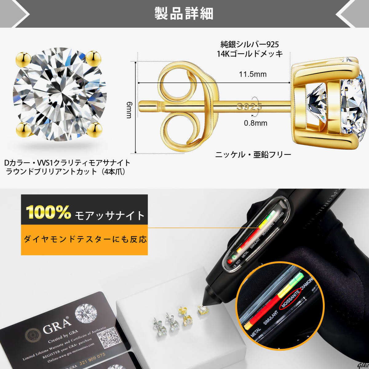 【どんなシーンでも華やかさを演出】スタッドピアス シルバー925 一粒ダイヤ モアッサナイト キラキラジュエリー メンズ 4本爪