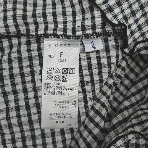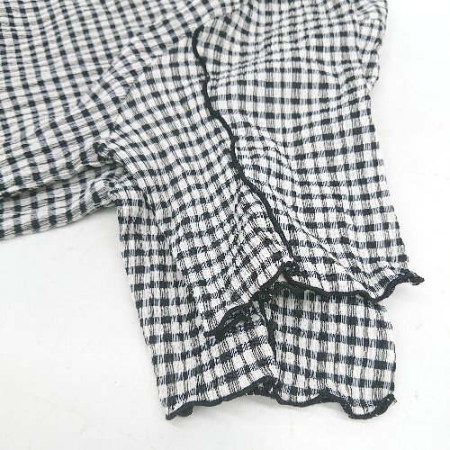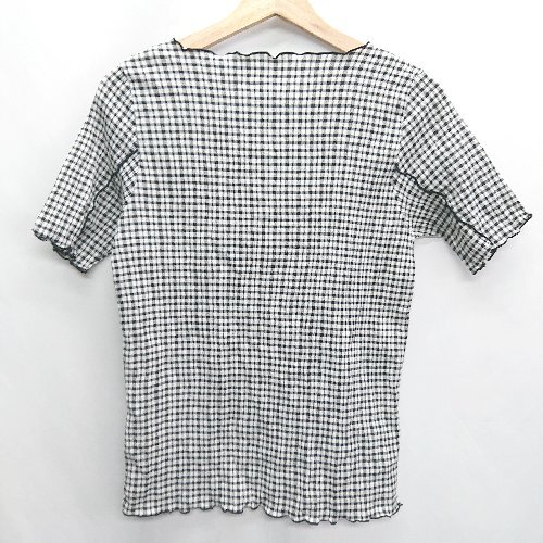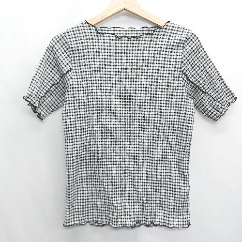 ◇ SHIPS any ギンガムチェック柄 半袖 シャーリングTシャツ サイズF ブラック ホワイト レディース E