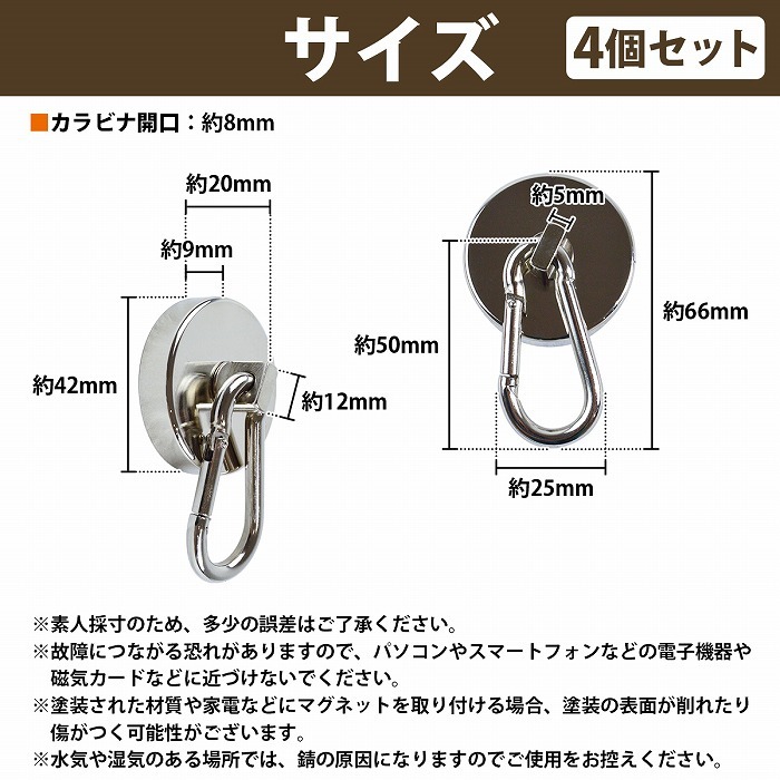 ■仕様:ステンレス製、ネオジム磁石、カラビナ付き