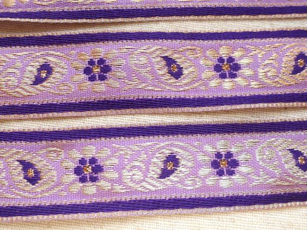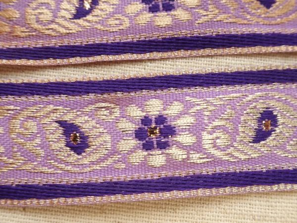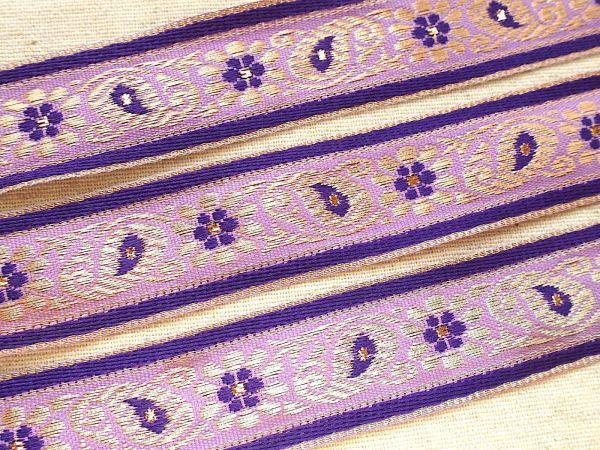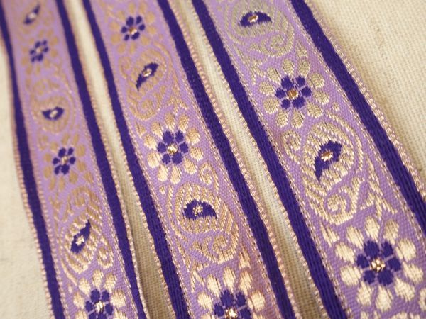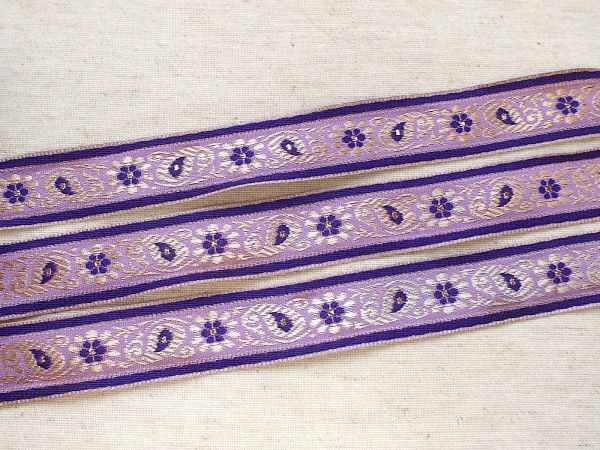 即決 50cmより チロリアンテープ 紫ペイズリー ☆ リボン トリム カルトナージュ 手芸 アラビック エスニック