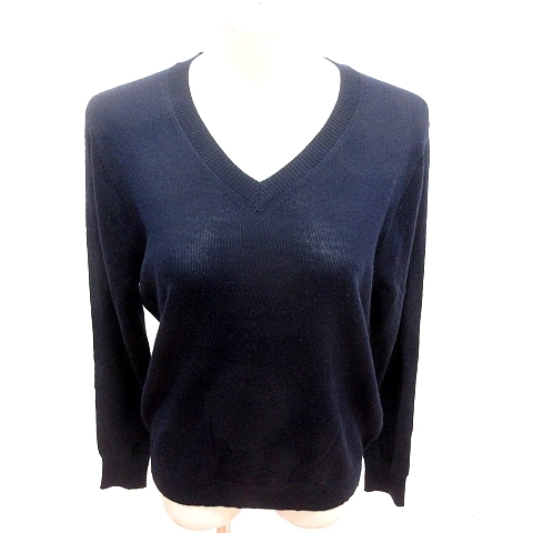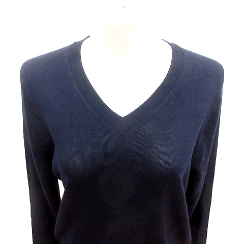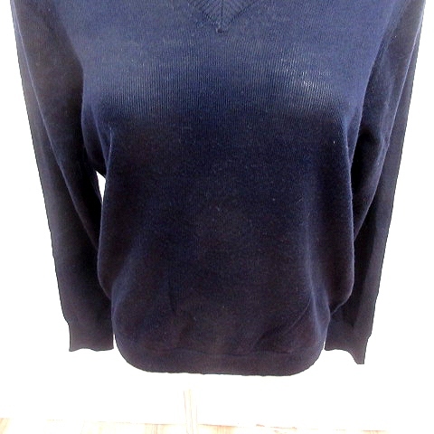 コムサイズム COMME CA ISM ニット カットソー Vネック 長袖 S 紺 ネイビー /RT ■MO レディース