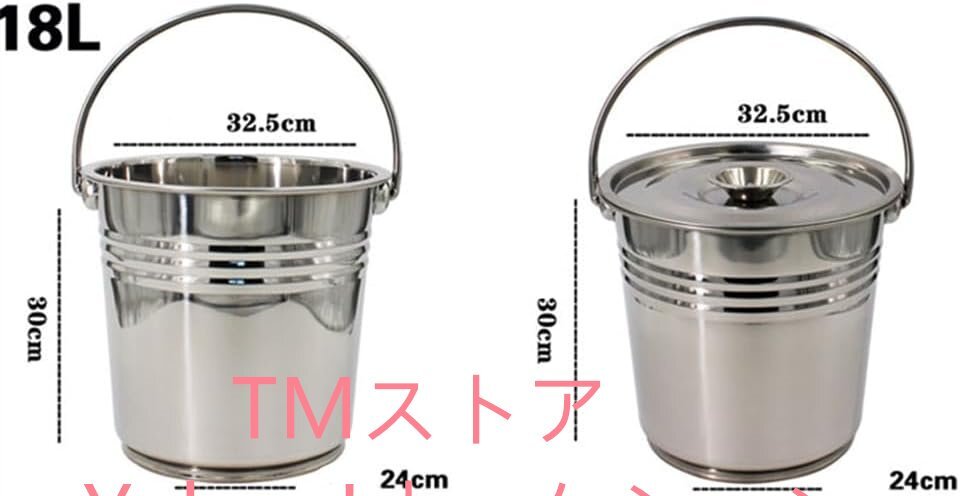 バケツ ステンレス鋼のバケツ アイスバケツ フタ付き 頑丈 大容量水筒 食事バレル 洗浄鉄バレル 食品等級 (18L,蓋付き)