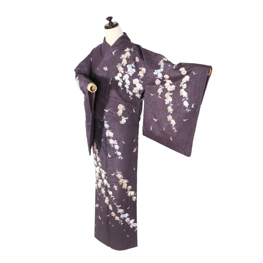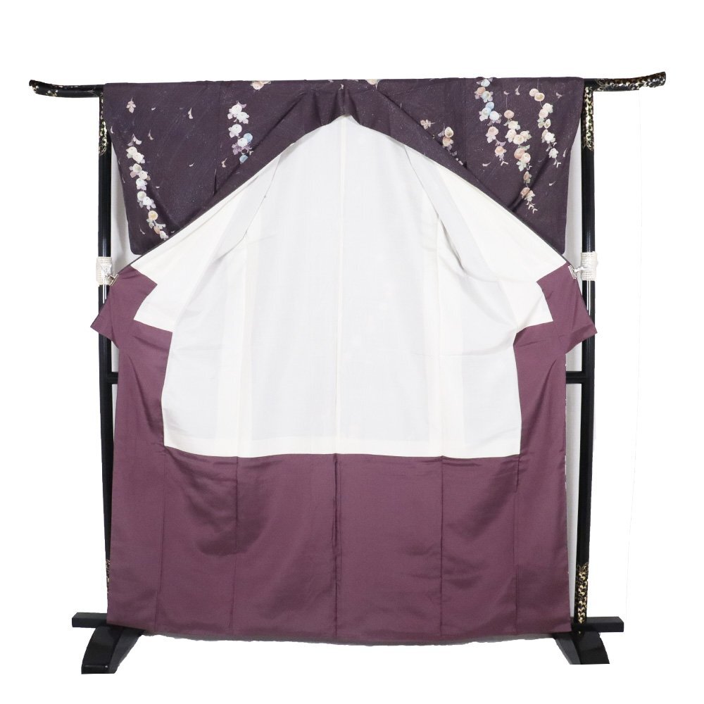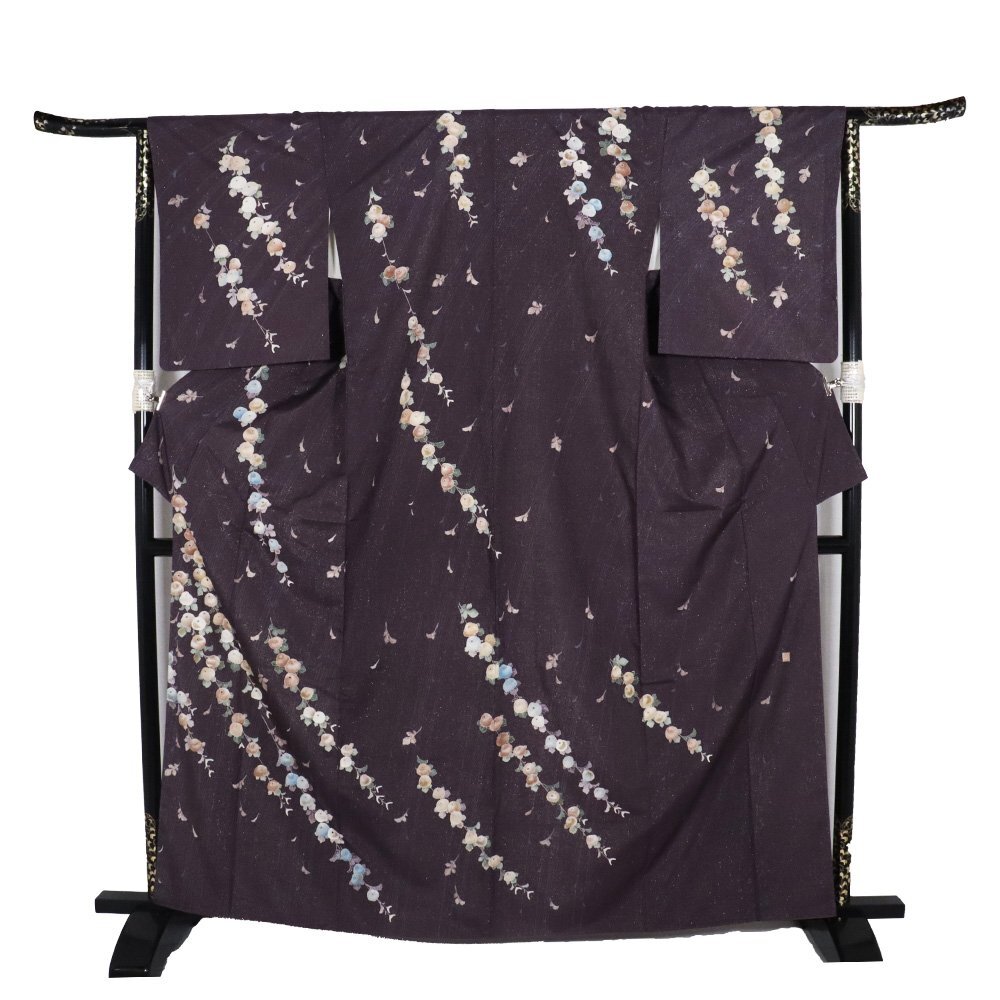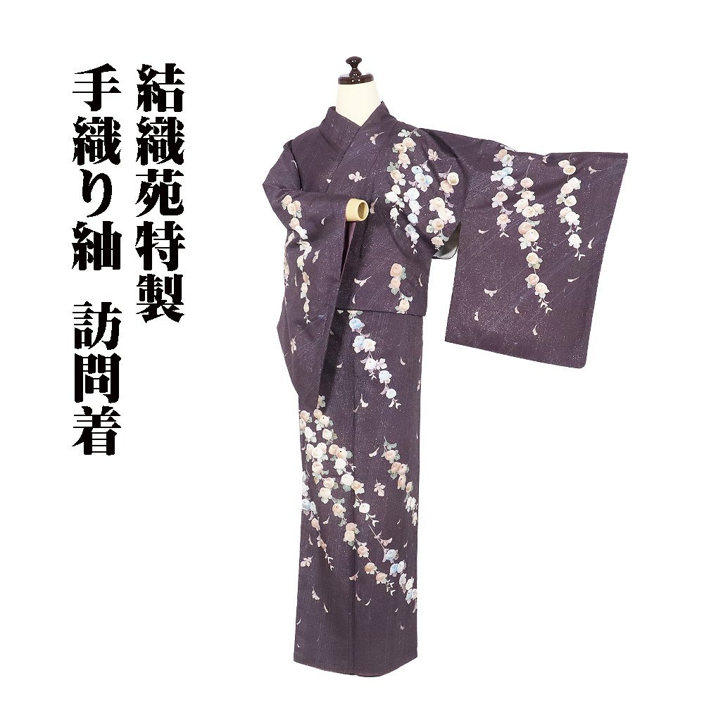 | 結織苑特製 手織り紬 訪問着 袷 紫(葡萄色)・銀糸通し地 万寿菊 刺繍入り 170 広襟 作家落款入り | |
