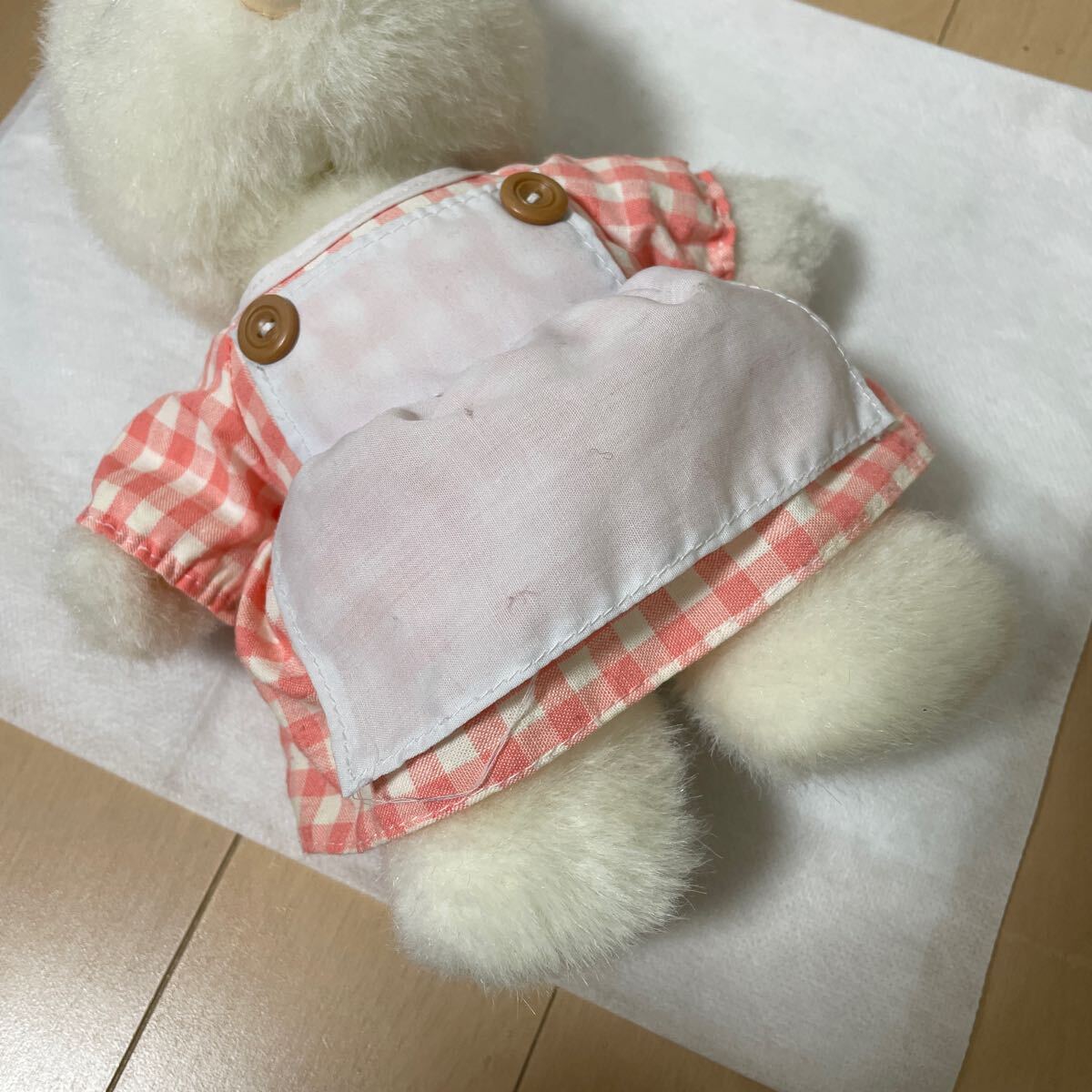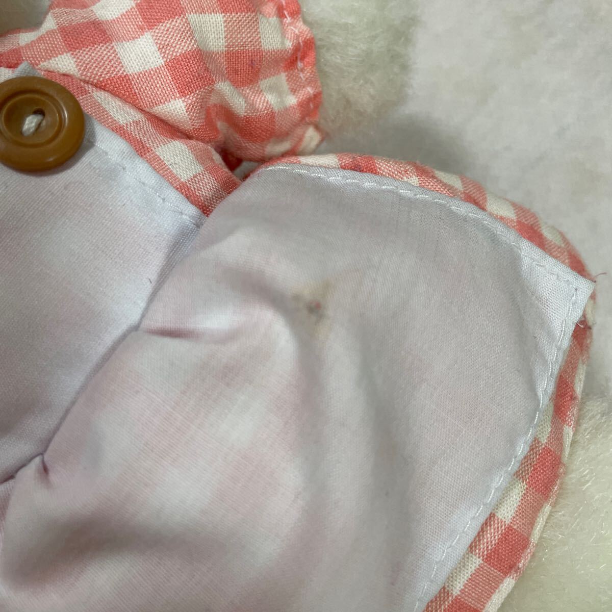 エプロンに一部いたみがあるのと、うしろのボタンが1つなく、パンツのゴムがのびています。