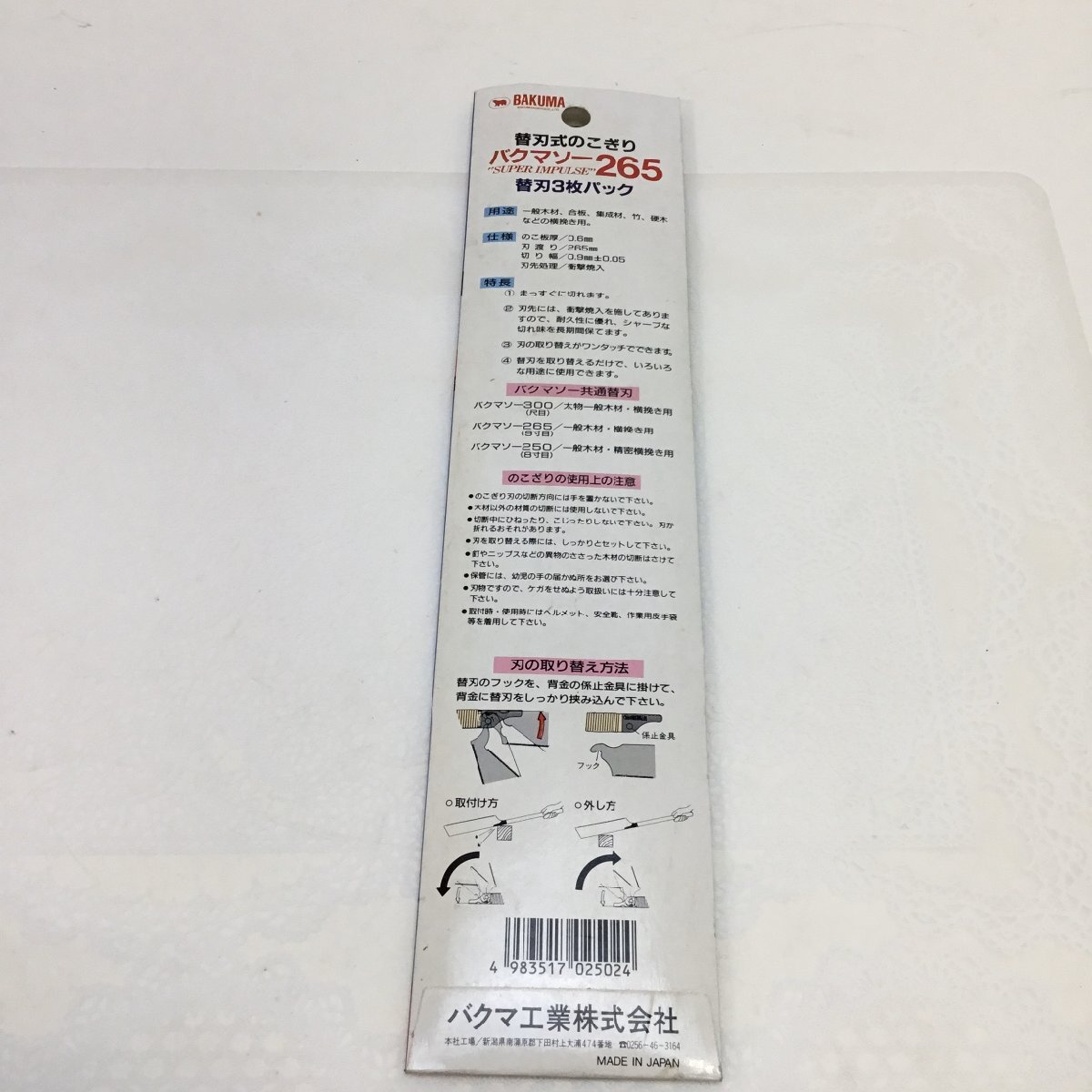 バクマ工業 バクマソー 265替刃 2枚入 のこぎり用 鋸用替刃 BAKUMA RS1204/0000 |