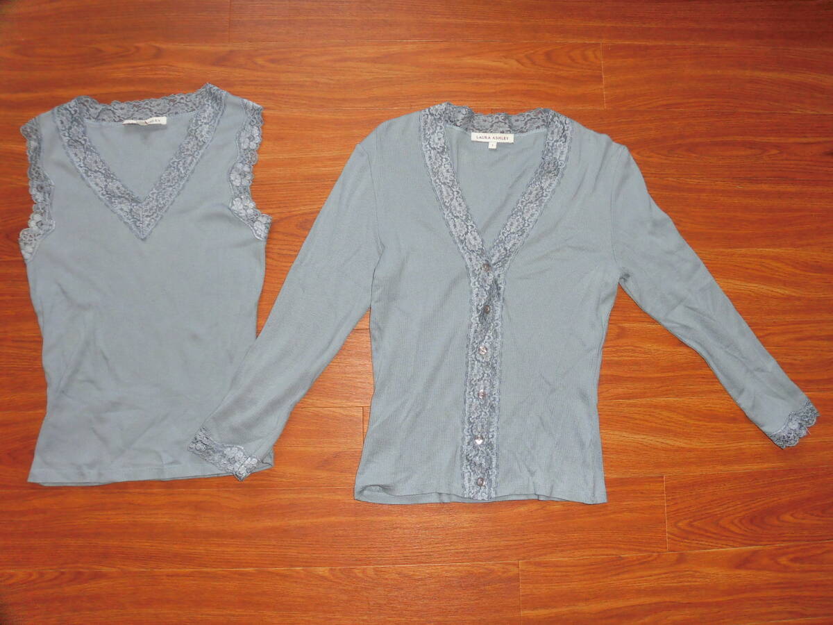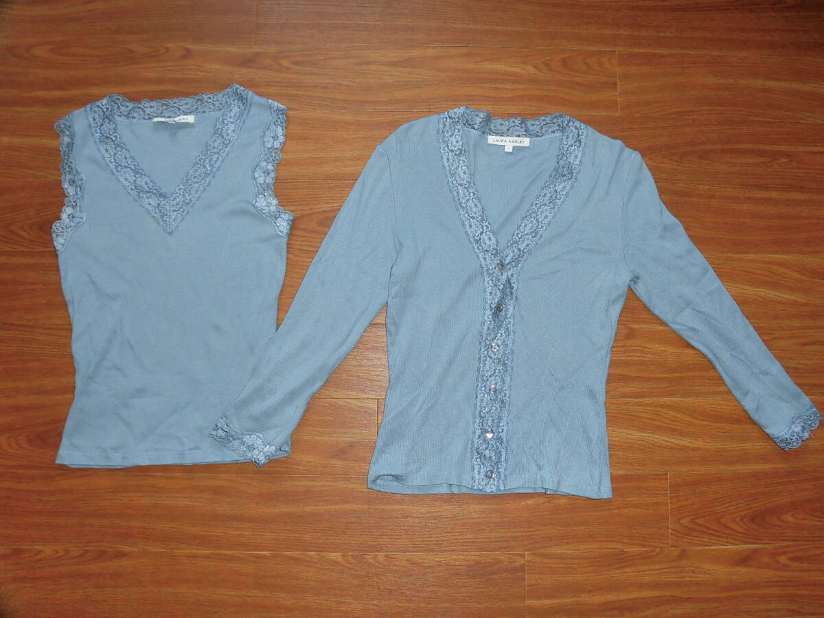 ローラアシュレイ★水色アンサンブルカットソー、カーディガン★S