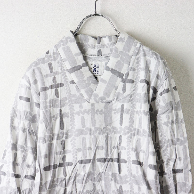 美品 ソウソウ SOU・SOU 京都 風靡ジバン 長袖 カットソー SS/ホワイト系 Vネック ブラウス コットン トップス Tシャツ【2400014188639】