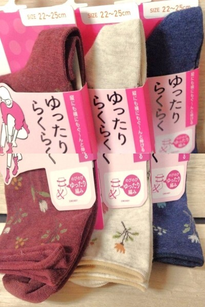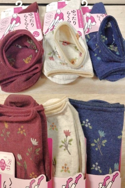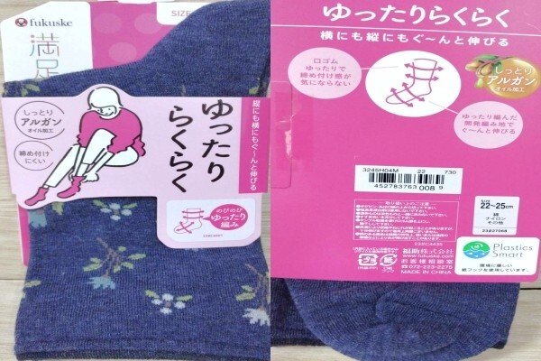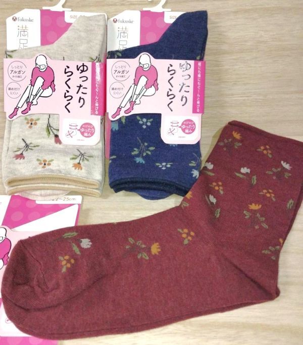 ゆ4)3足)女22-25cm)赤肌紺 花柄)靴下ソックス★フクスケ満足 ゆったりらくらく ぐーんと伸びる 3245H04M オールシーズン福助★送料込